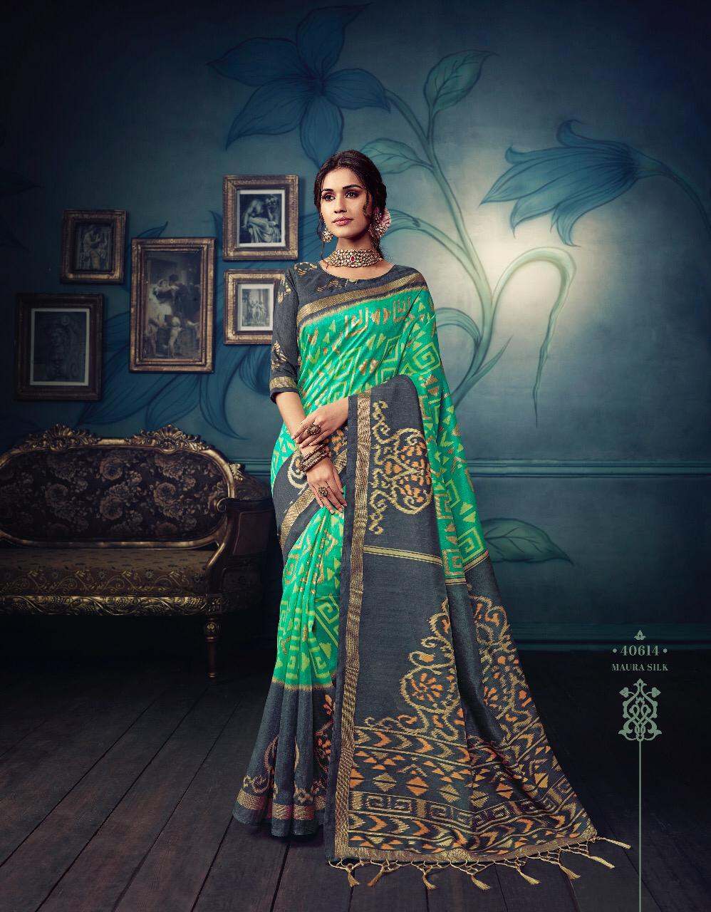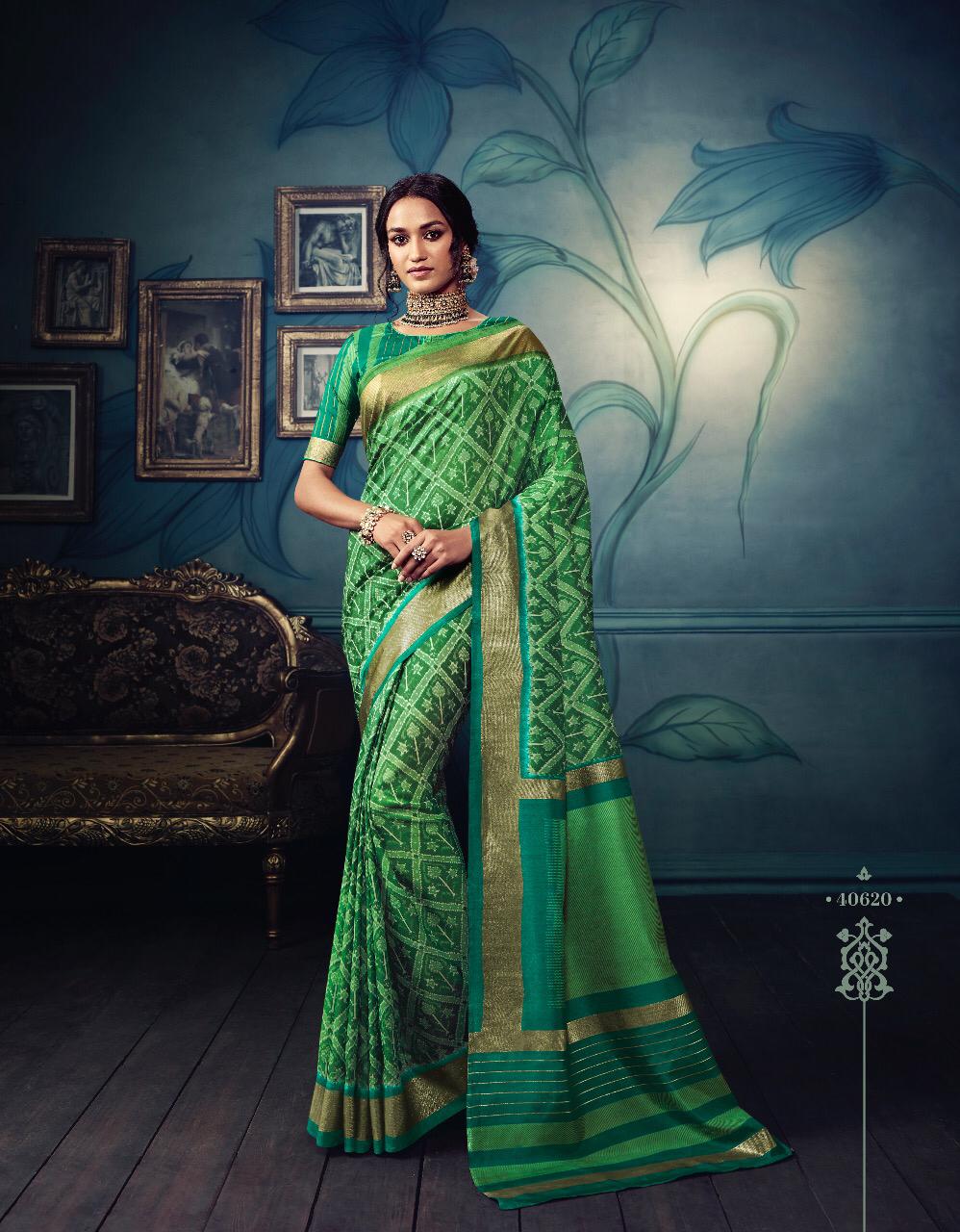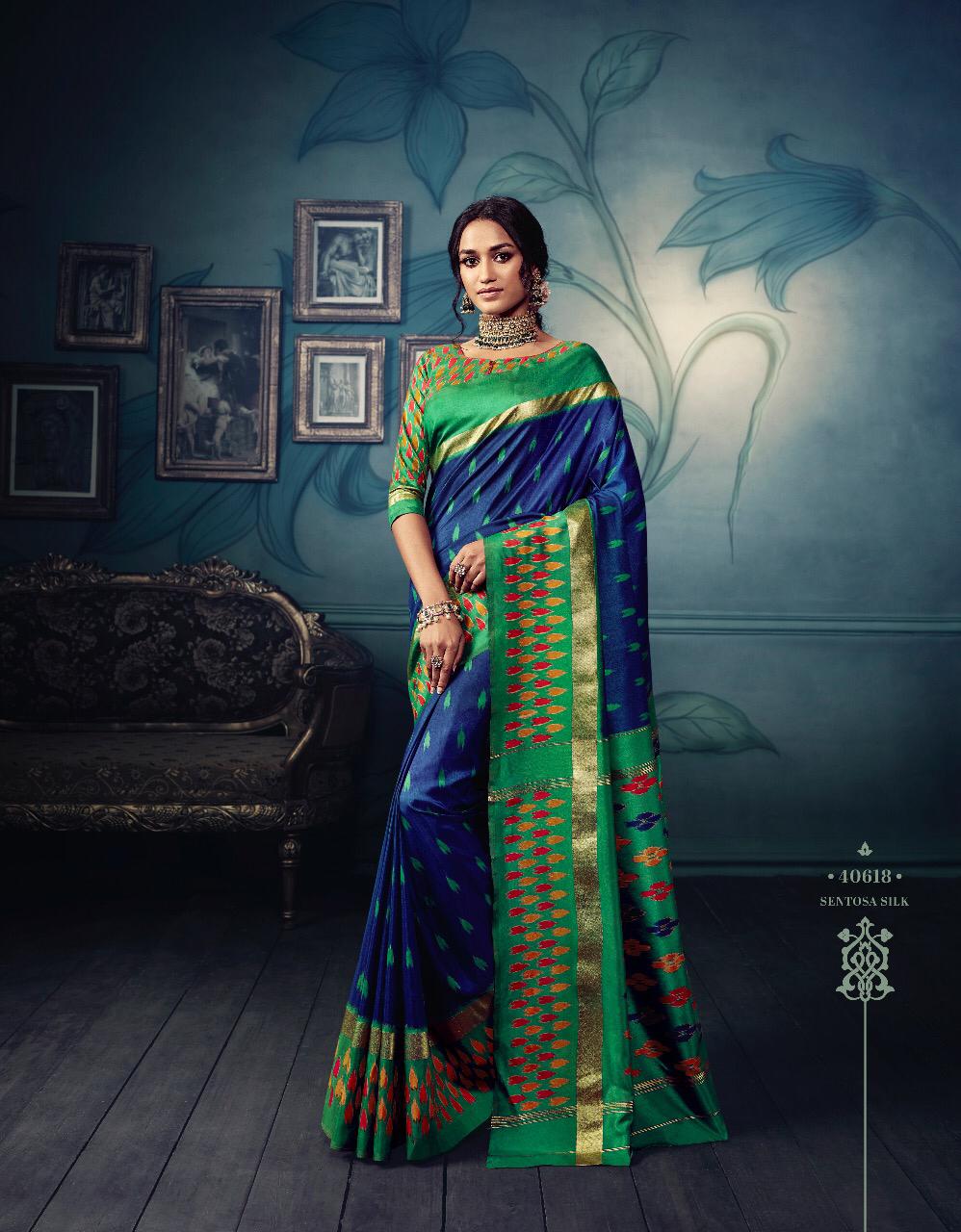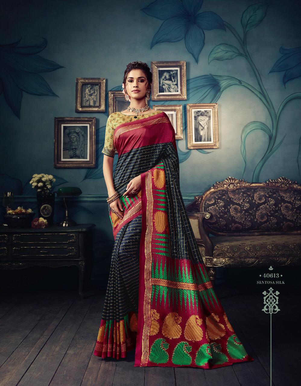 VIPUL CAT - 406 KOSTA SILK " MISHREE " ALL NEW SILK BASE FABRIC @ " DISCOVER YOUR UNIQUENESS " DISGUISE THE SPOTLIGHT WITH YOUR VARIOUS LOOKS & LET IT FOLLOW YOU. AVERAGE RATE-682₹ (Ratelist attached) 5%Gst Applicable Set to set Delivery 2 Days |