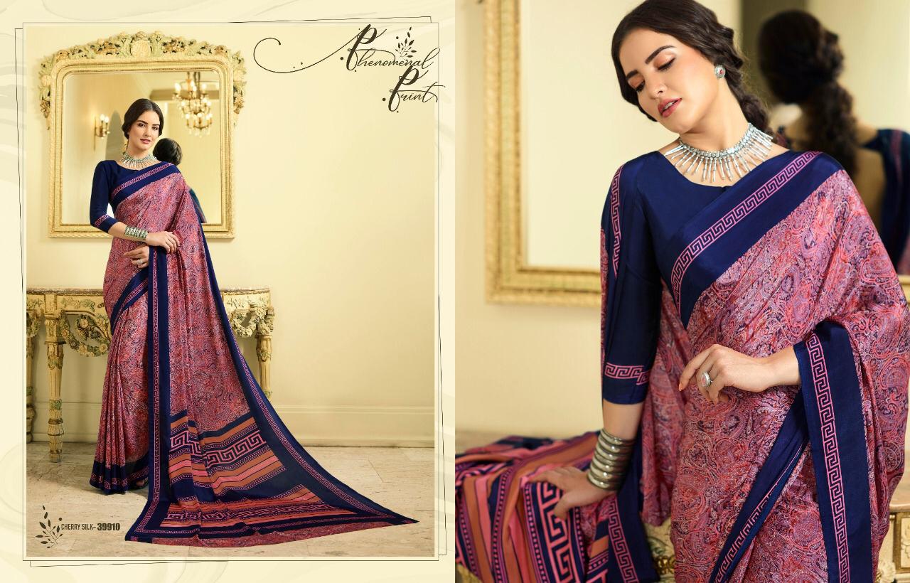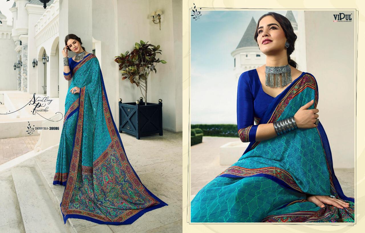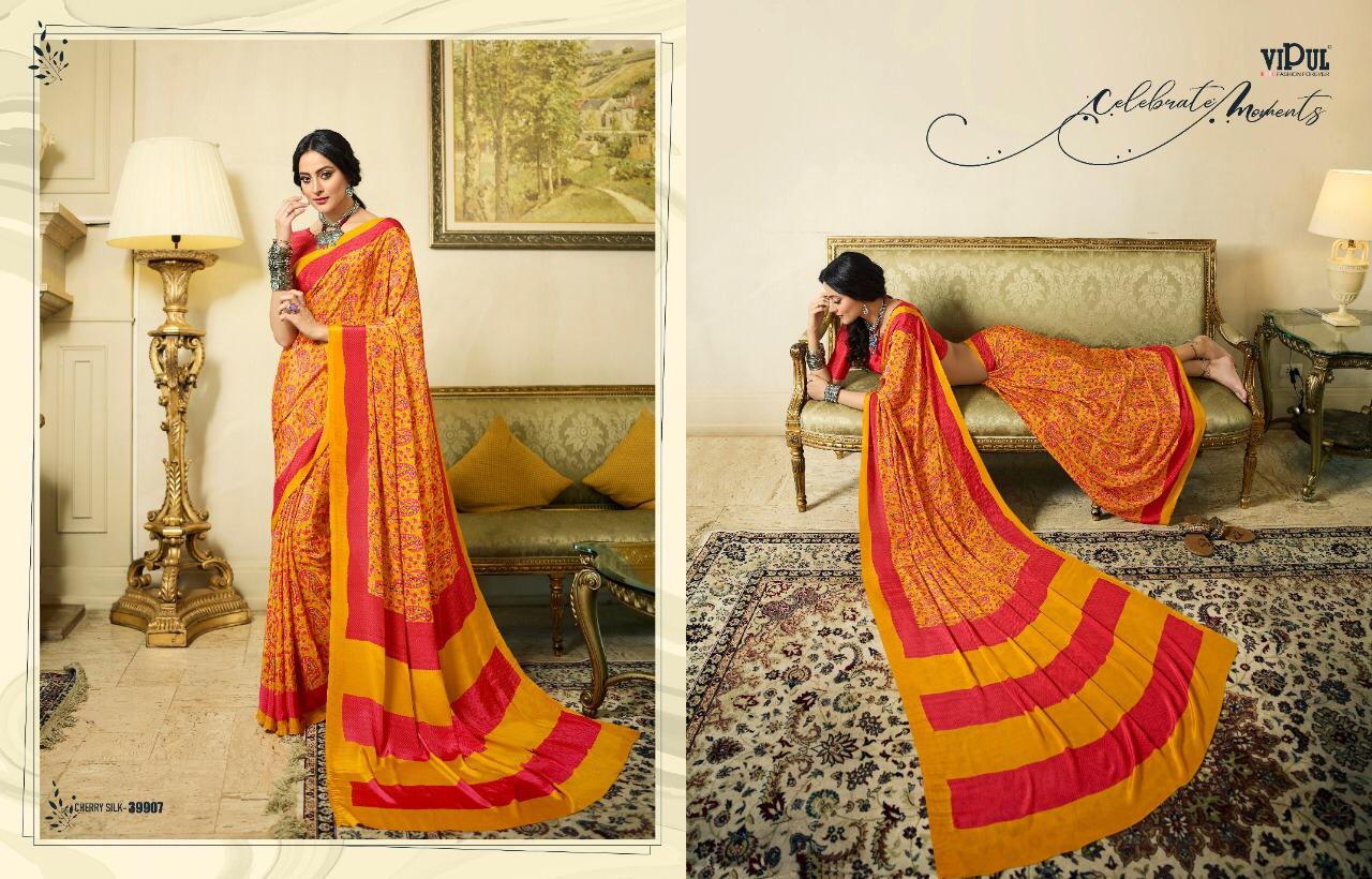 VIPUL *CAT-399 * *HERITAGE SILK - PEARL * NEW CREPEY TRADITIONAL SILKY PRINTS .YOU CAN MAKE THEM MEMORABLE BY DRAPING FOR ALLWAYS UNIFORM PURPOS. FABRIC-HEAVY CRAPE PRINTED RATE-550₹ 5%Gst Applicable Set to set Delivery 2 Days |