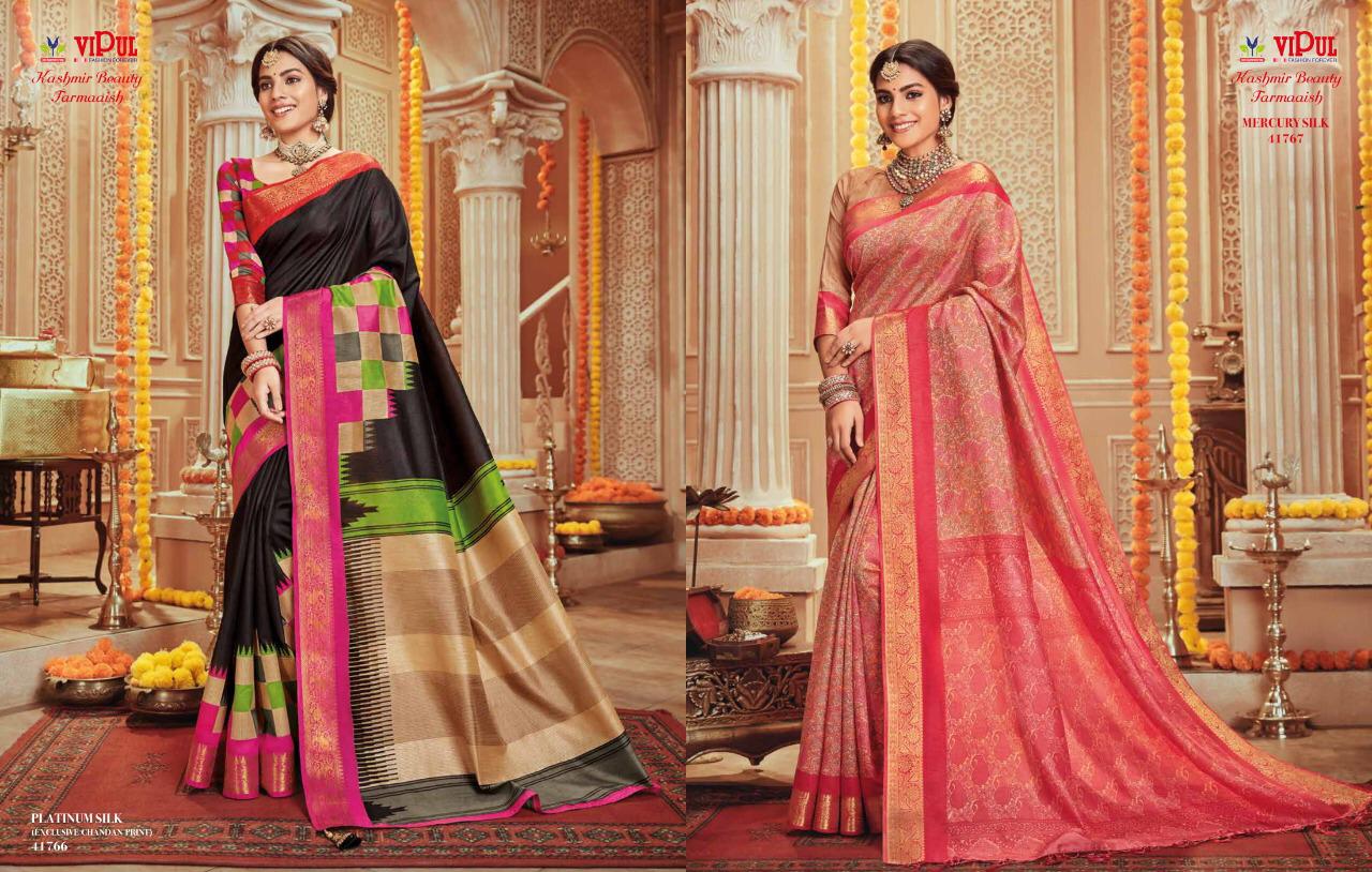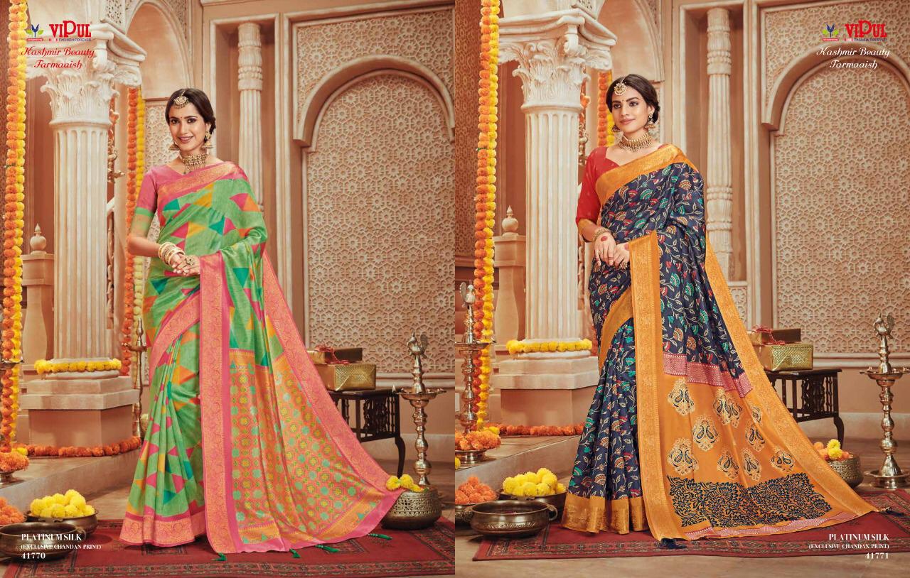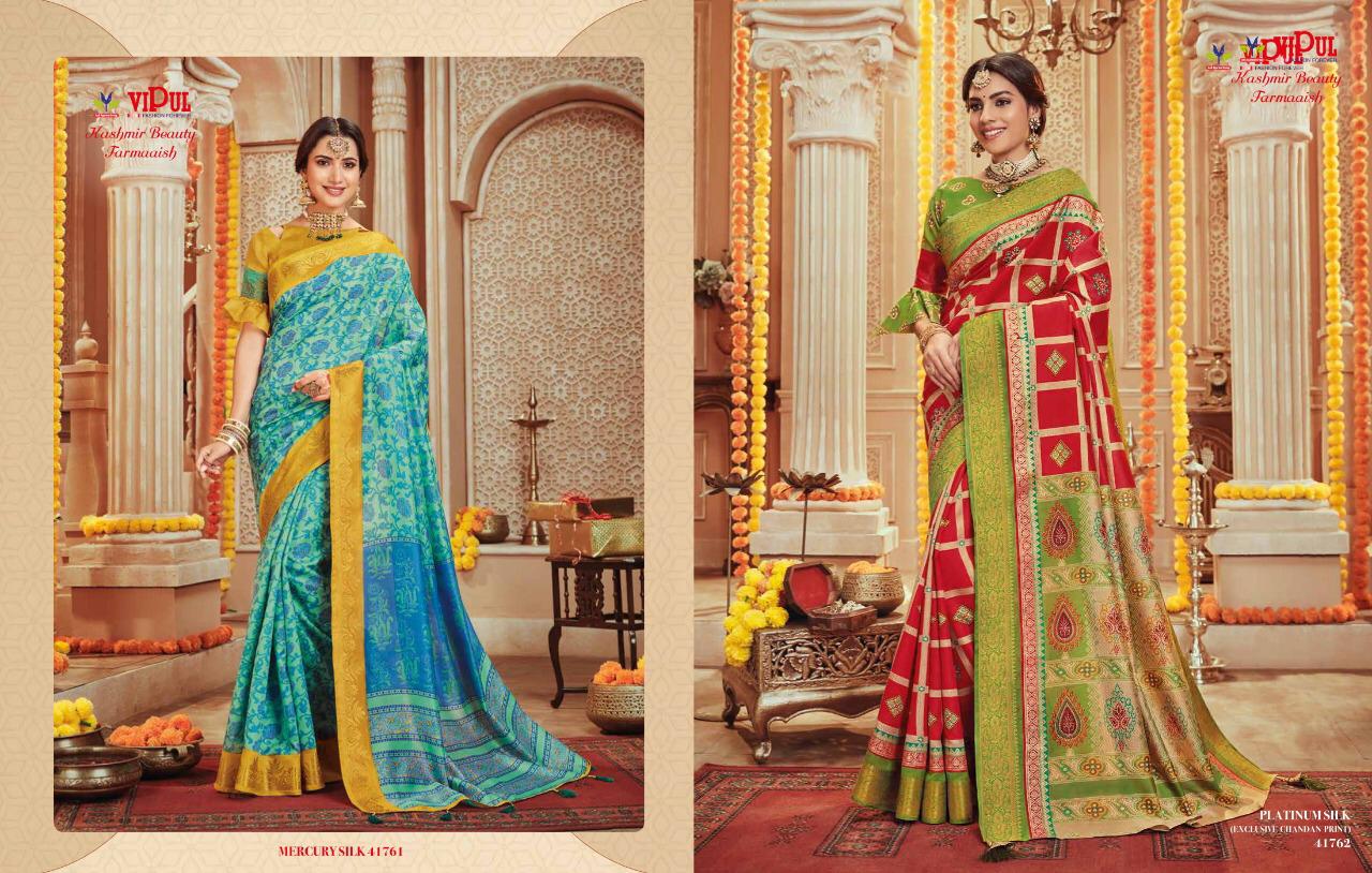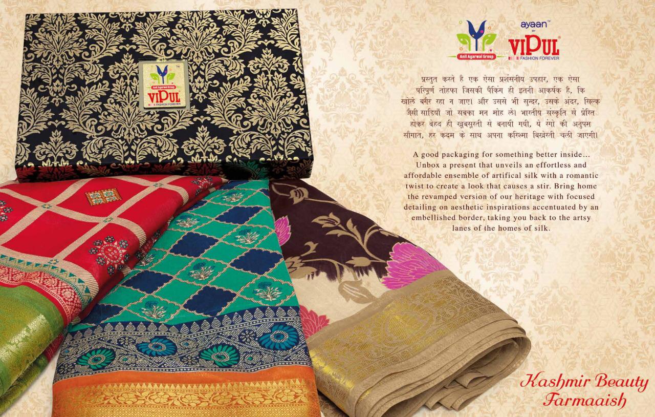VIPUL Presents - *KASHMIR BEAUTY * âÂÂFARMAAISH" REPLACE YOUR OUT OF DATA WARDROBE WITH EXOTICALLY PATTERNED COLLECTION. HEAVY SILK COTTON PRINTED WITH WEAVING BANARSI BORDER AND JHALLAR ON PALLU AVG RATE-671â¹ SET TO SET FANCY BOX PACKING READY DELIVERY |