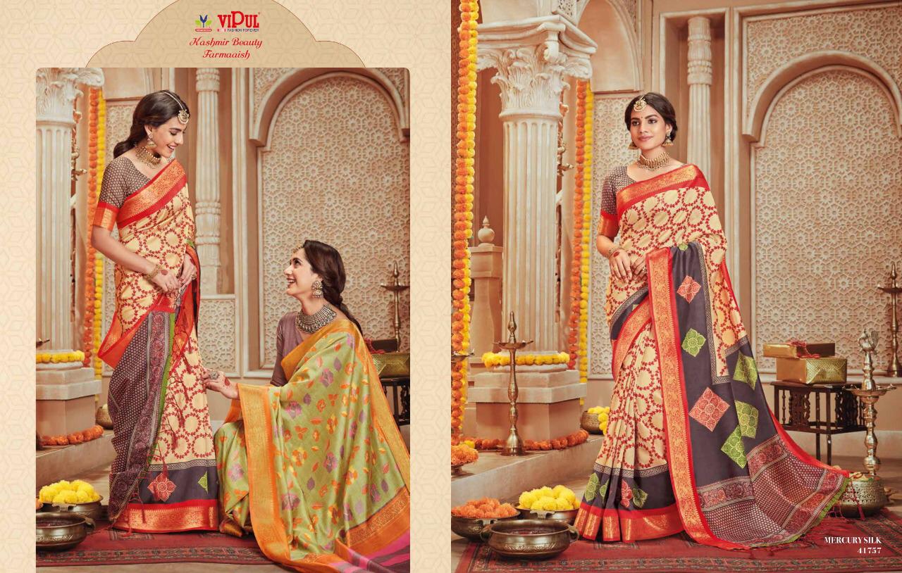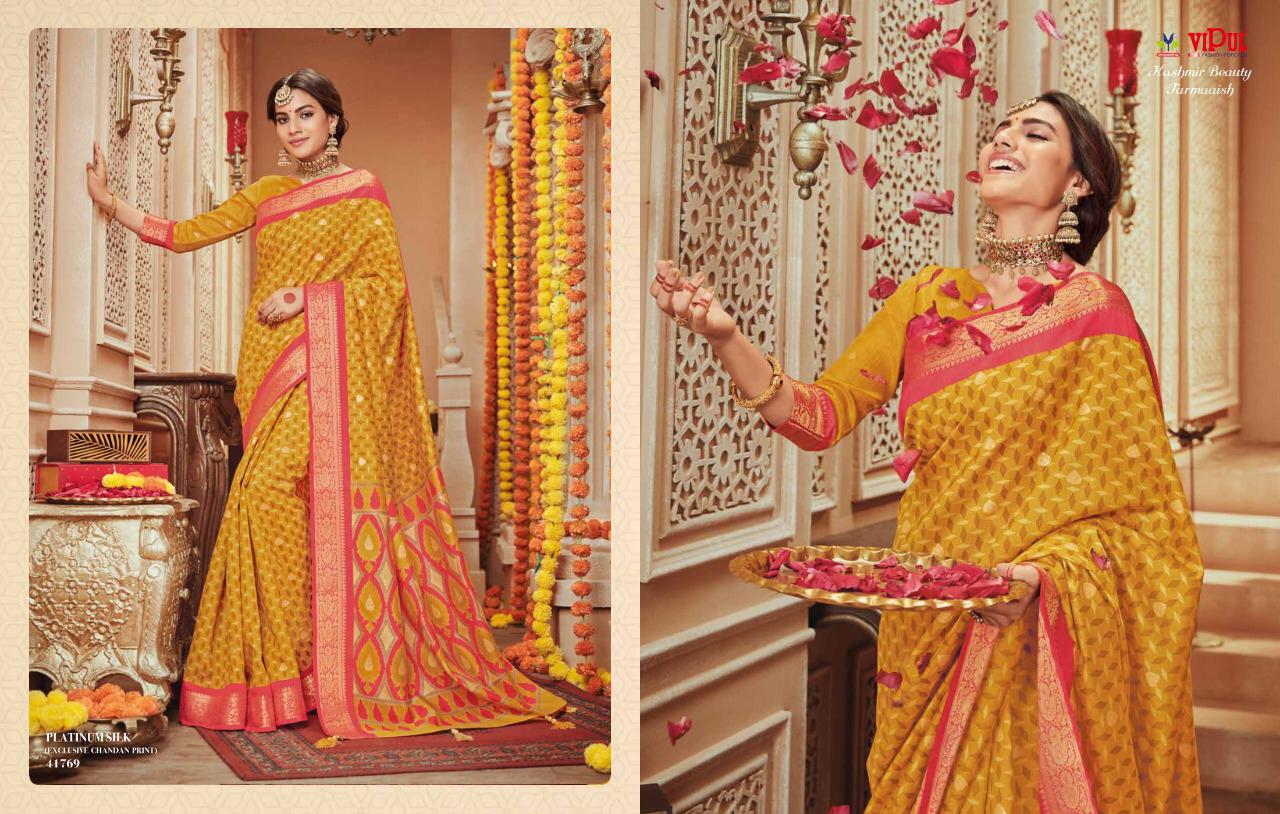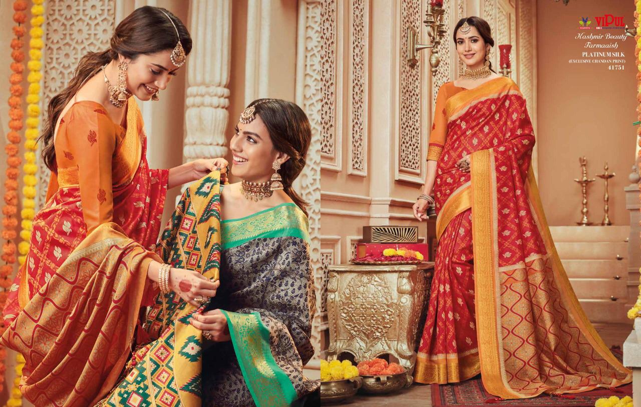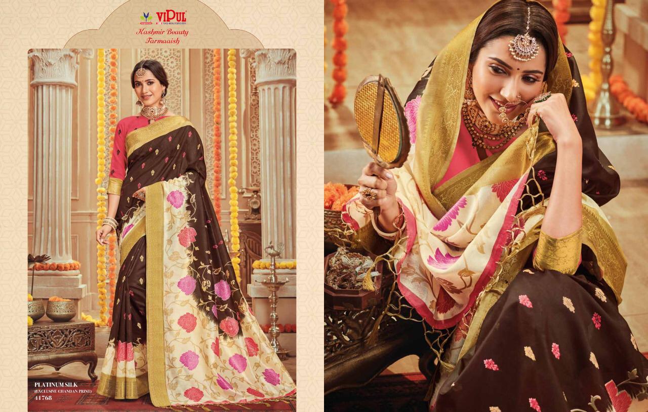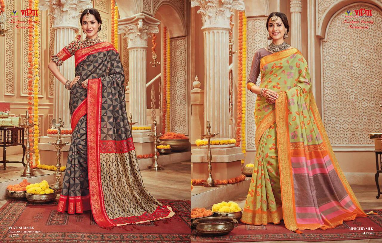 VIPUL Presents - *KASHMIR BEAUTY * âÂÂFARMAAISH" REPLACE YOUR OUT OF DATA WARDROBE WITH EXOTICALLY PATTERNED COLLECTION. HEAVY SILK COTTON PRINTED WITH WEAVING BANARSI BORDER AND JHALLAR ON PALLU AVG RATE-671â¹ SET TO SET FANCY BOX PACKING READY DELIVERY |