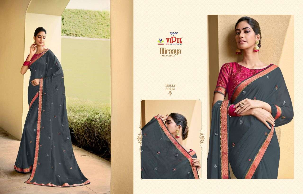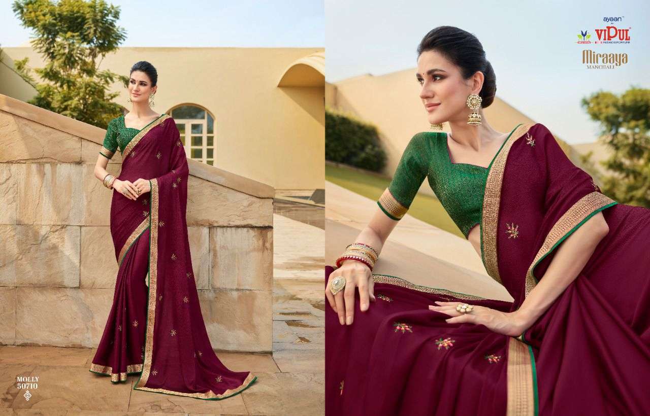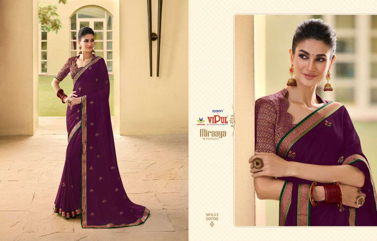 VIPUL Presents MIRAAYA MANCHALI HEAVY PURE FANCY GEORGET WITH EXCLUSIVE EMBROIDERY WORK , FANCY LACE , AND HEAVY FANCY FABRIC BLOUSE RATE: 1127/- DESIGNS: 09 READY TO DESPATCH |
