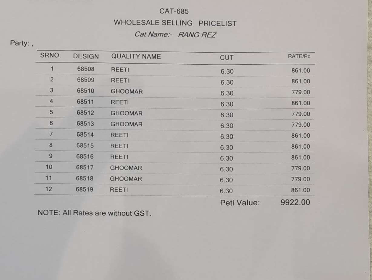 AVAILABILITY: On Booking RANGREZ 68508-68519