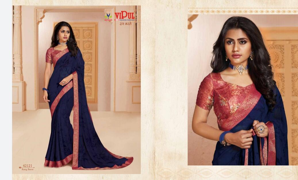 - RANG BARSE Effort Lessly Elegant, The Celebrated Brand Is All Set To Enthrall You With A Pay Of Bright ColourS , Modem Silhouettes & Meticulous Attention. Fabric-Pure Geiger fancy with lace border and fancy blouse Cut-6.30 Rate-869₹ 5%Gst Applicable |