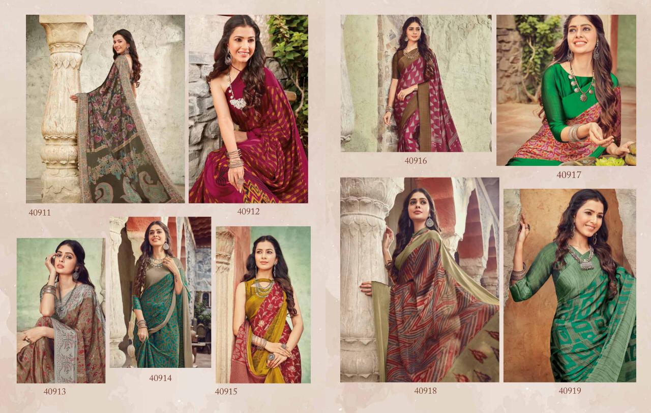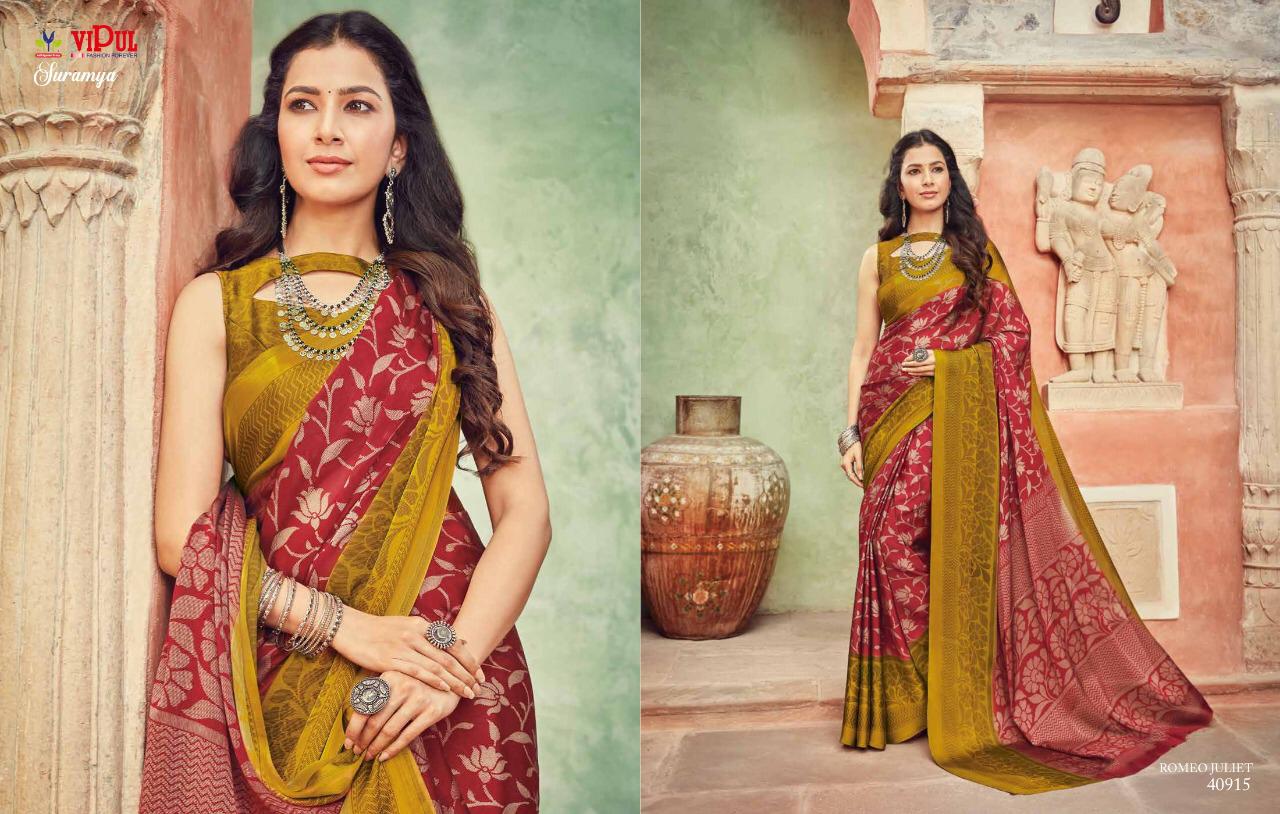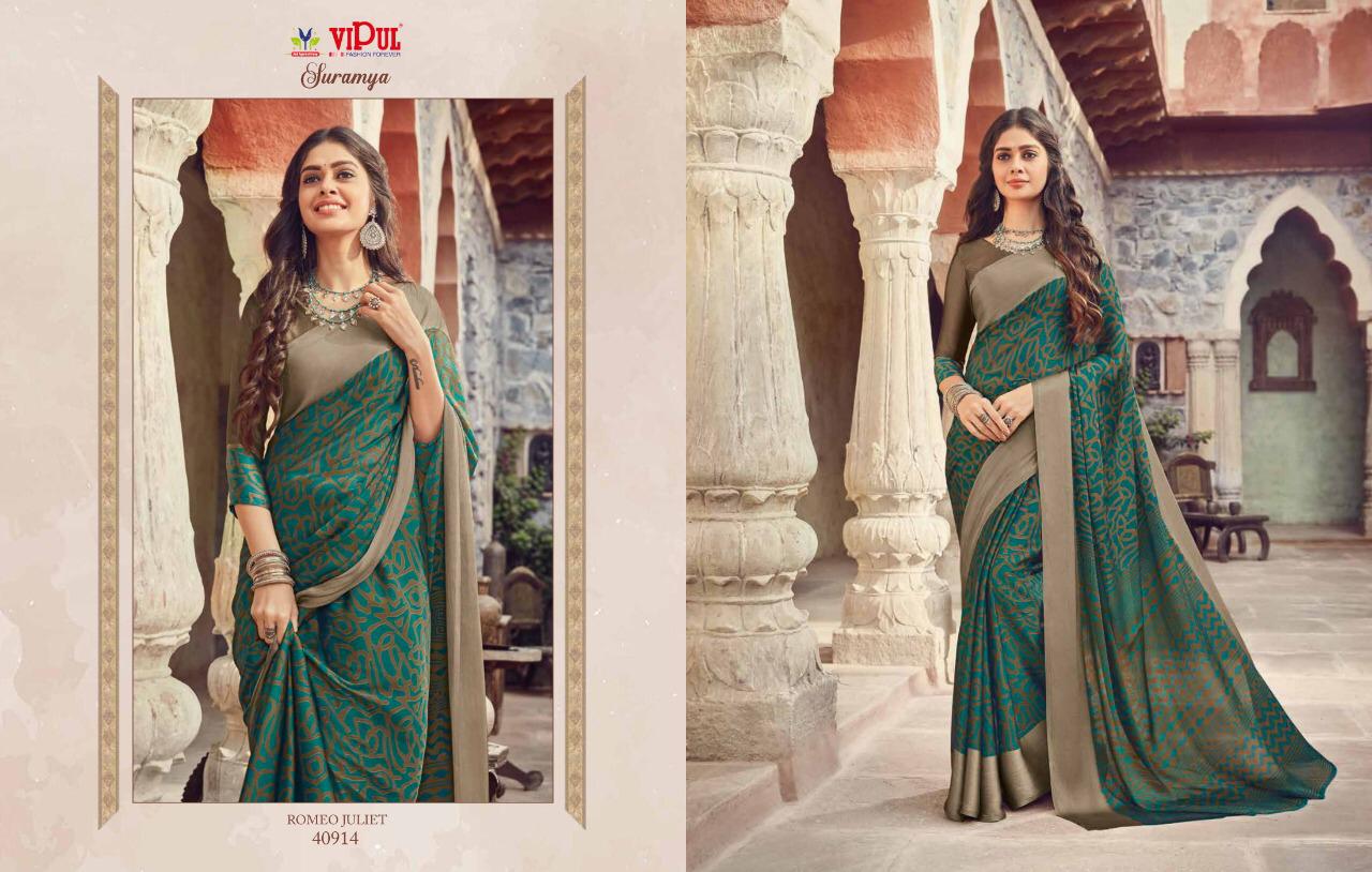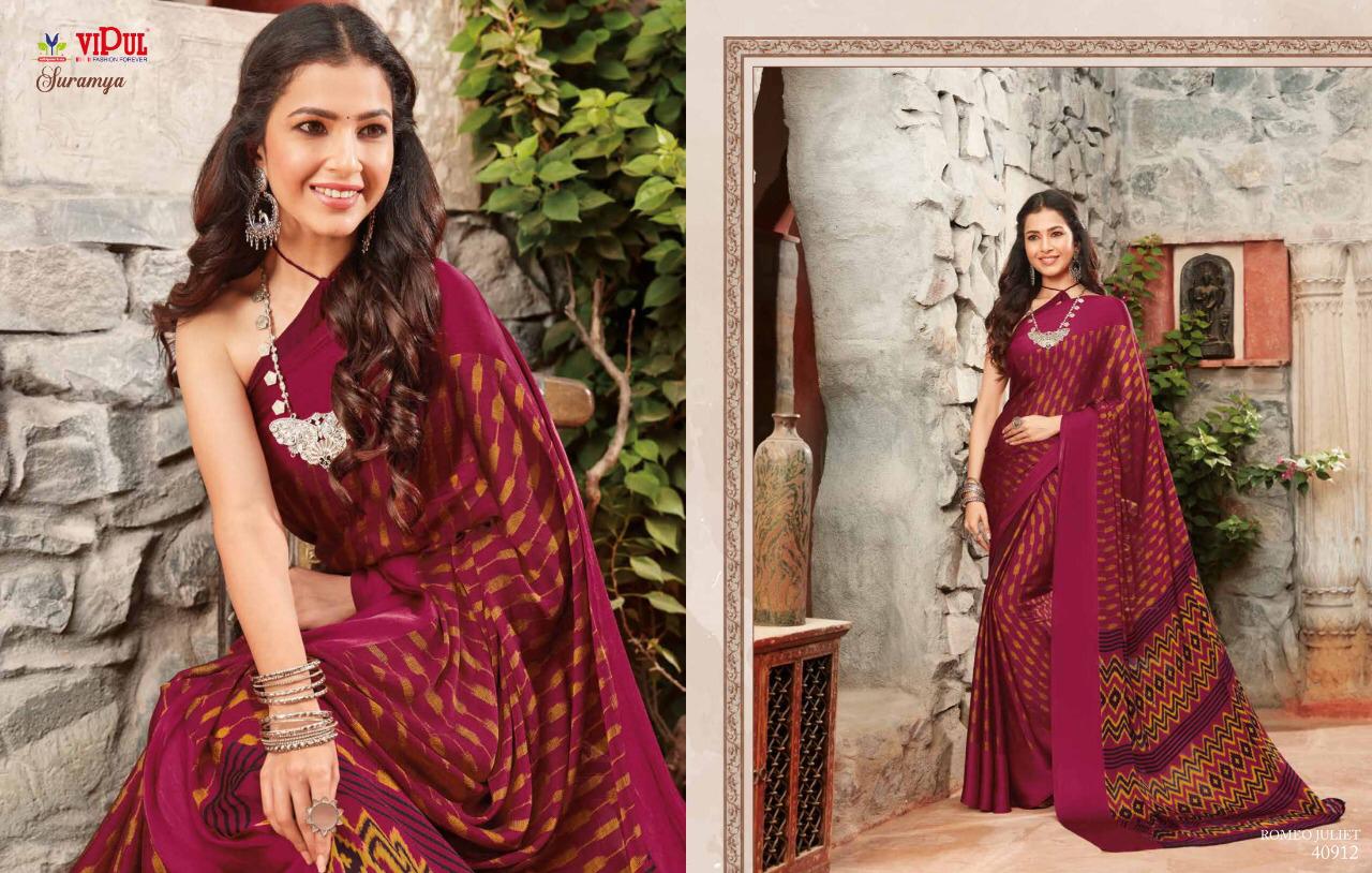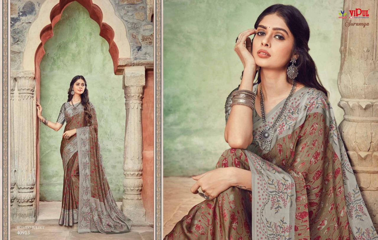 Vipul Suramya Cat 409 Chiffon Saree With Satin Border Concept Collection