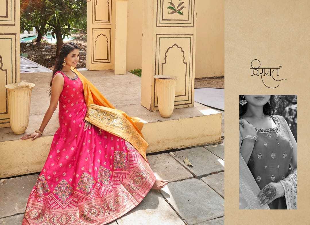 🙏🏻 VIRASAT NEW BOOK 🙏🏻 BANARASIYA VOL 02 New Designer Gown Exclusive Collection TOP FABRIC :- JEQARD 12 THARED WORK AND HENDWORK RATE 1007 - 4225/- |