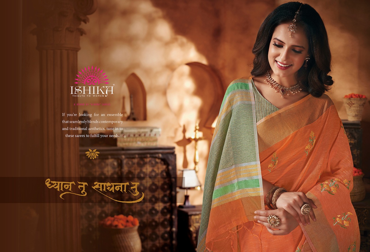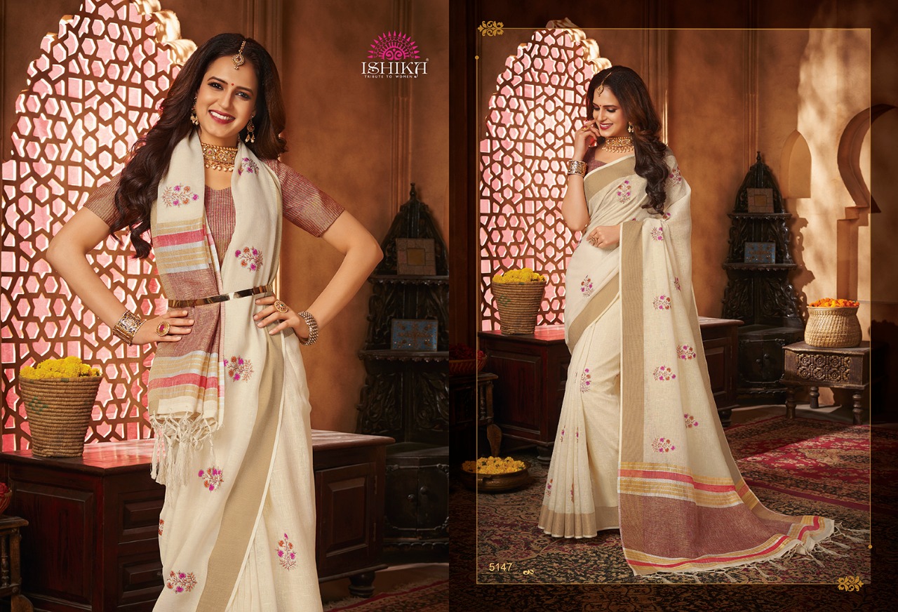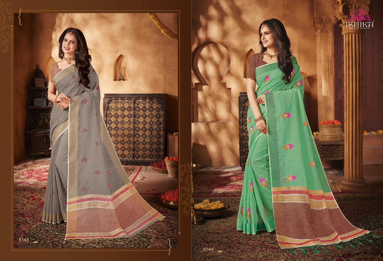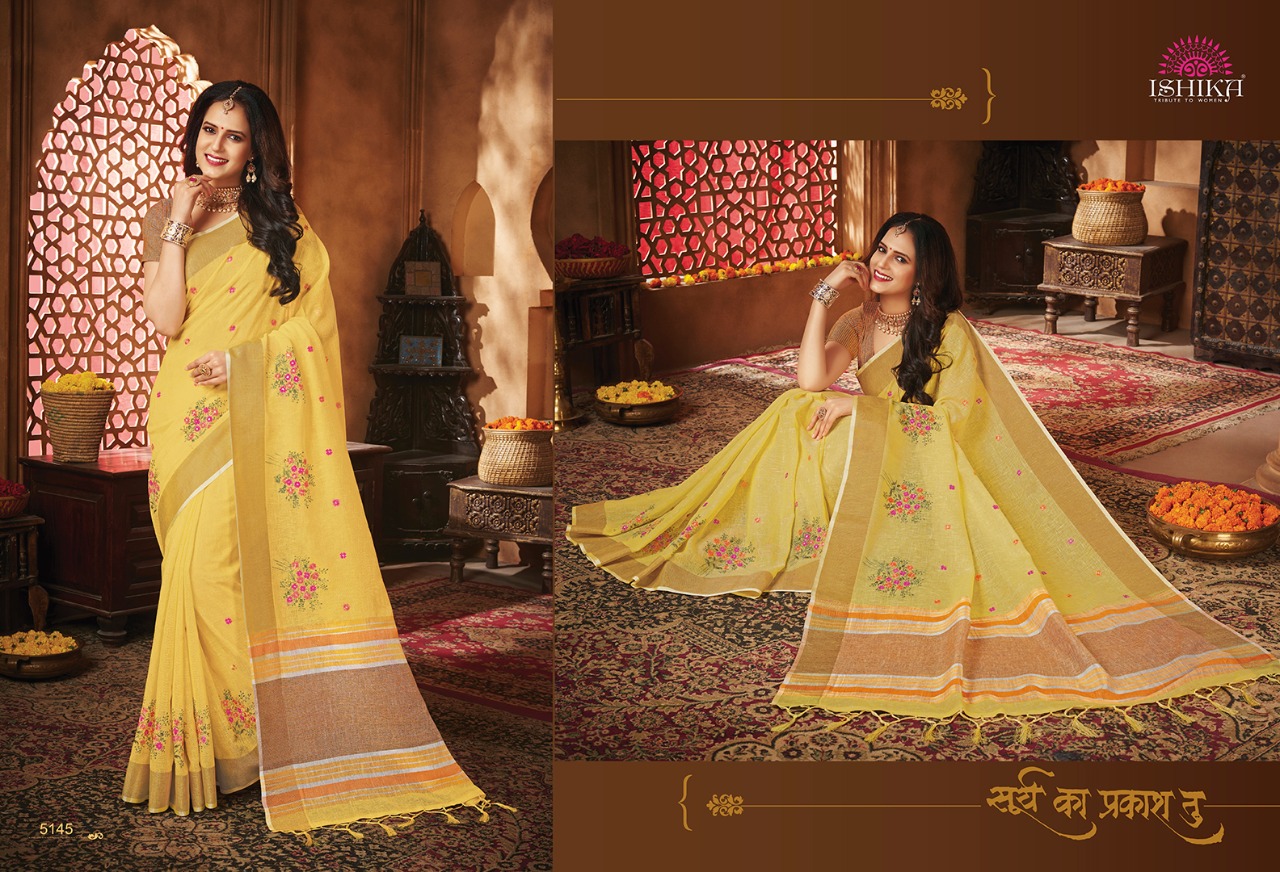 Virasat By Ishika Saree Cotton Linen With Embroidery Classy Look Saree Wholesaler