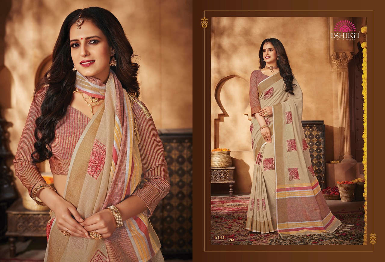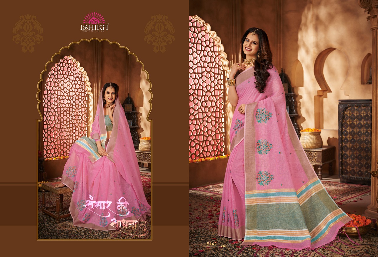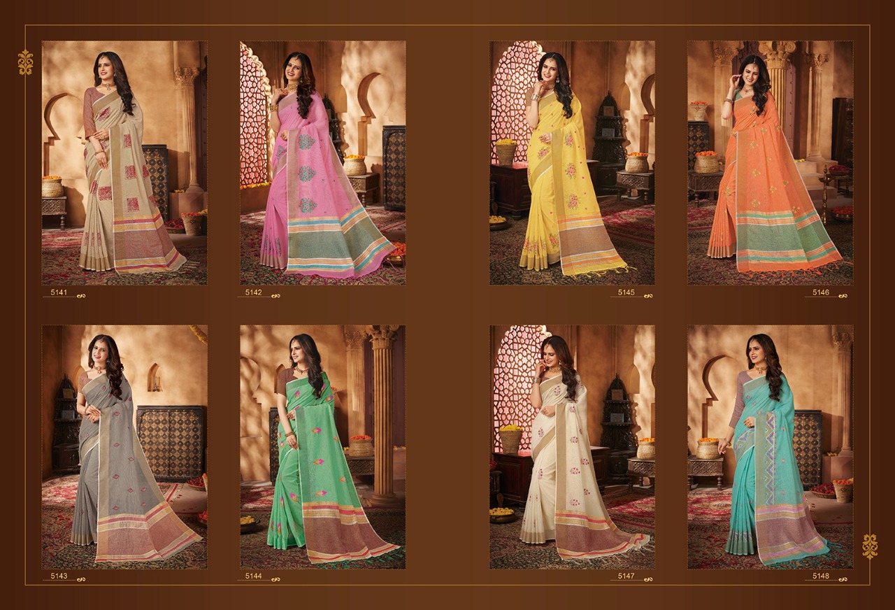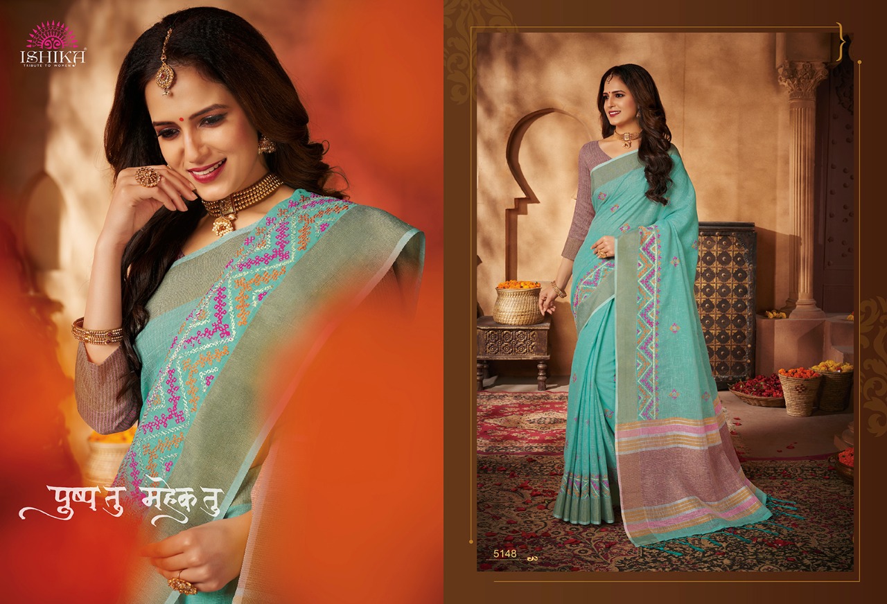 Virasat By Ishika Saree Cotton Linen With Embroidery Classy Look Saree Wholesaler