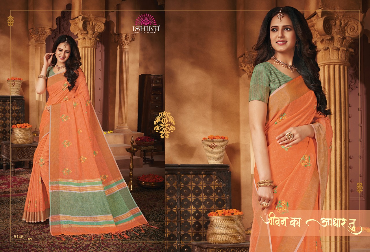 We are launching our new Saree Catalog Brand - ISHIKA SAREES . Catalog Name : VIRASAT Fabrics - COTTON LINEN WITH EMBROIDERY * Set to set * Rate 995/- only Pc - 08 GST 5 Percent Extra. Delivery 3-4 days |