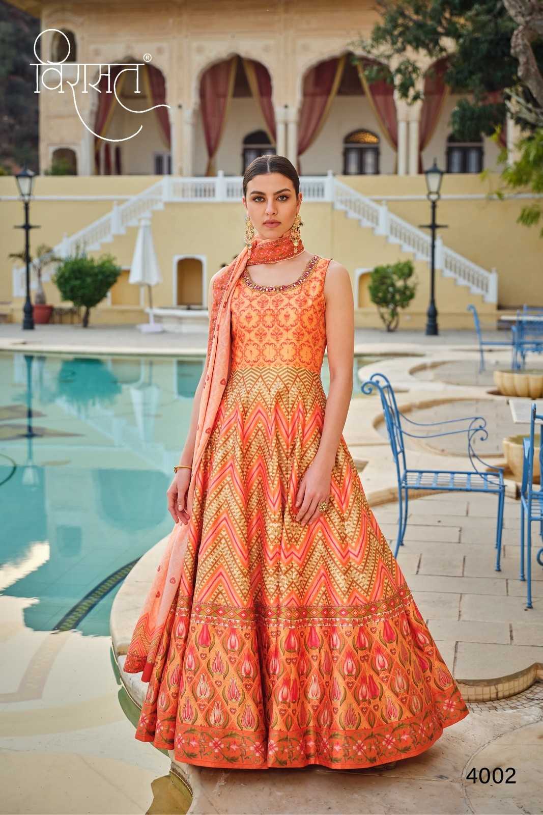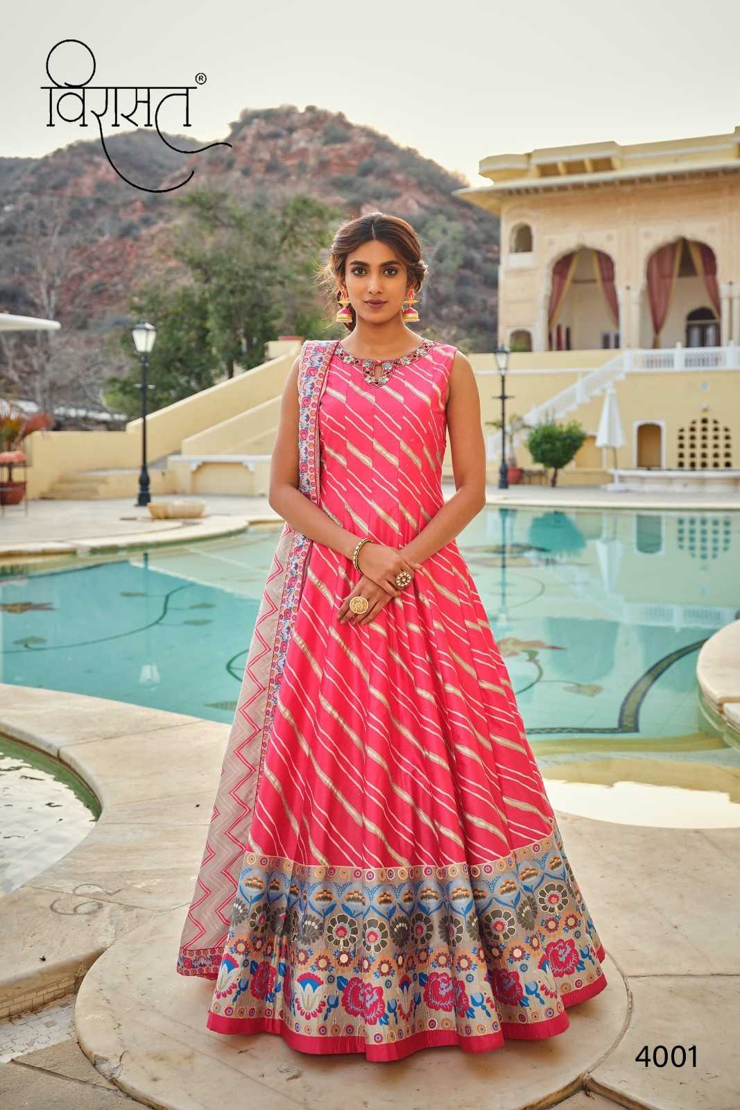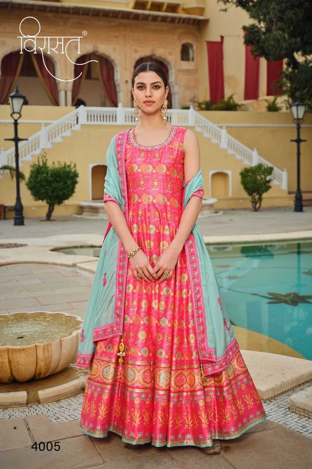 virasat peshwai neck handwork cherry silk readymade gown collection