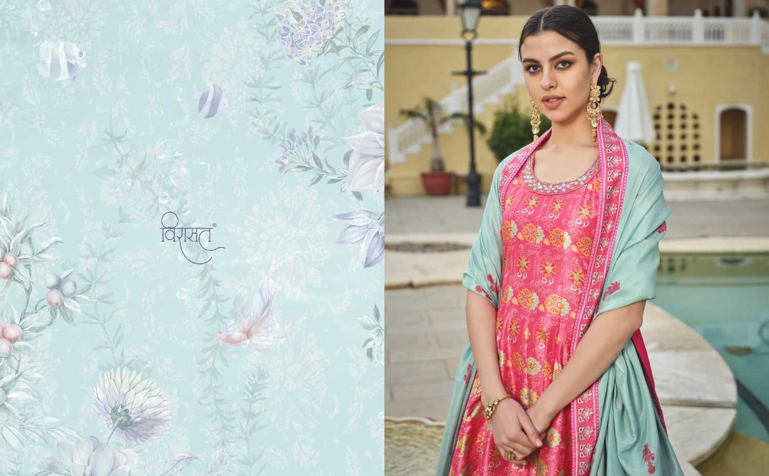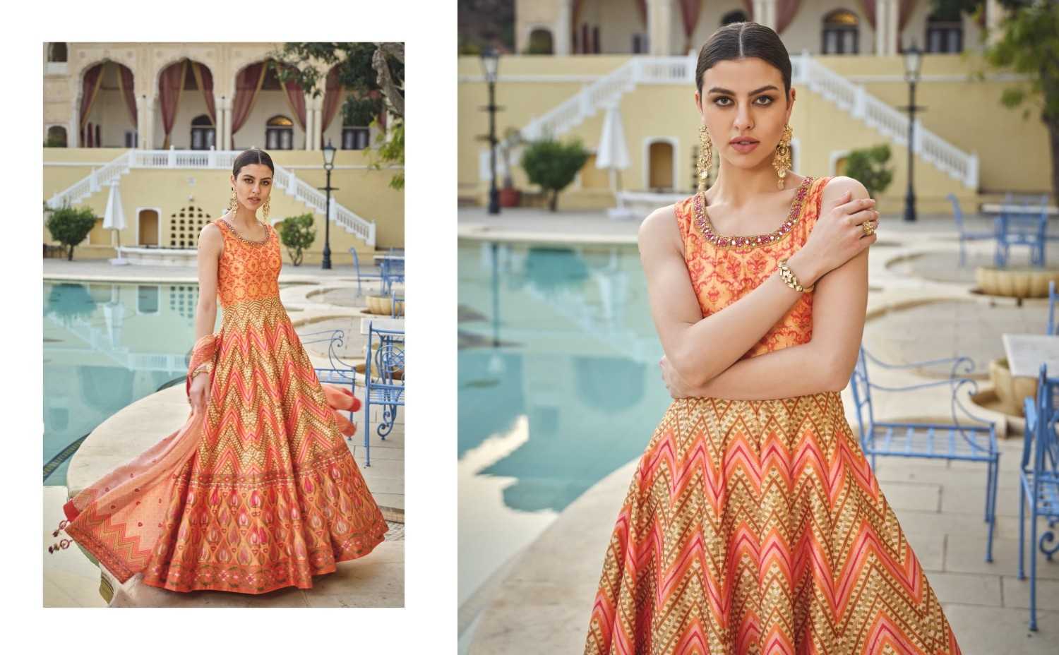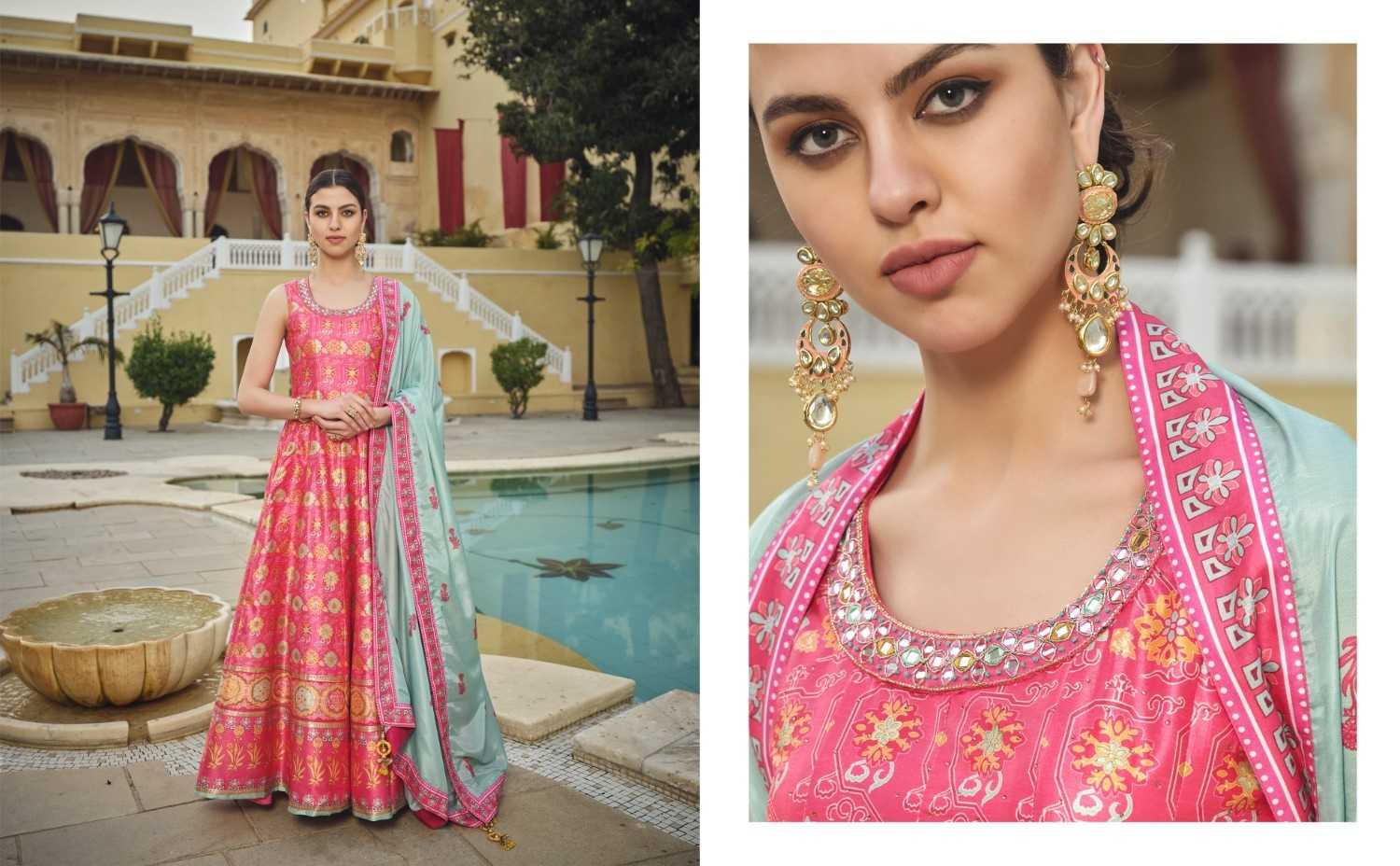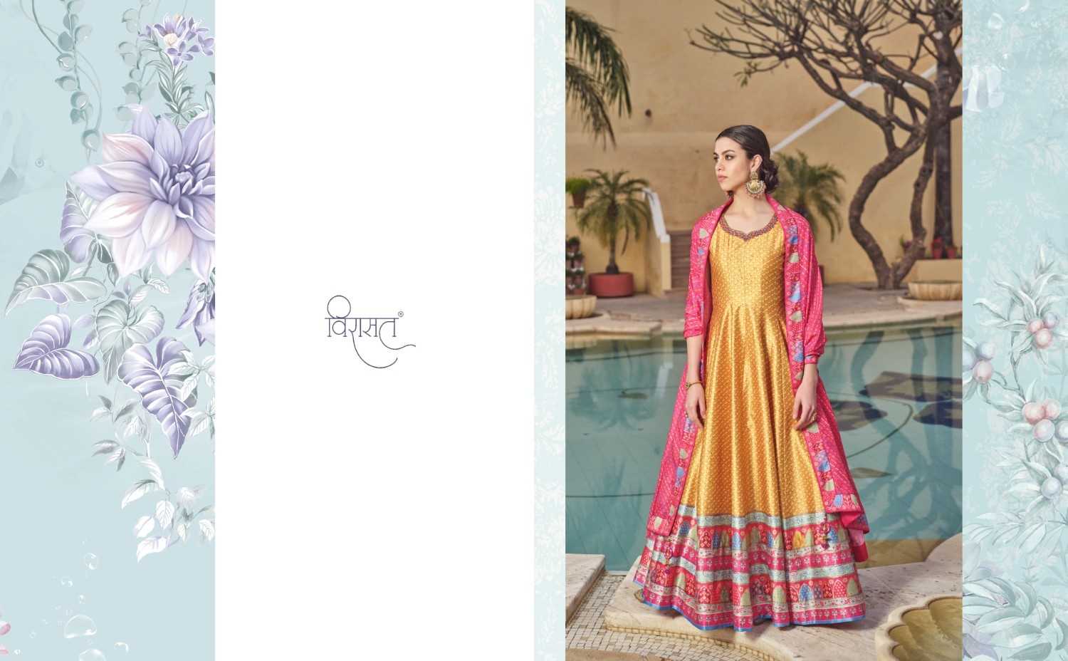 virasat peshwai neck handwork cherry silk readymade gown collection