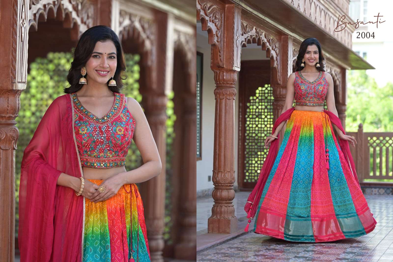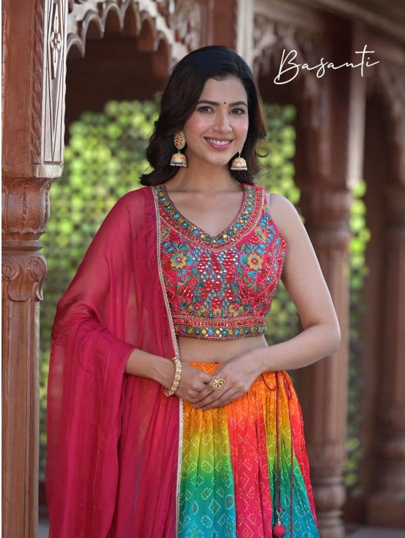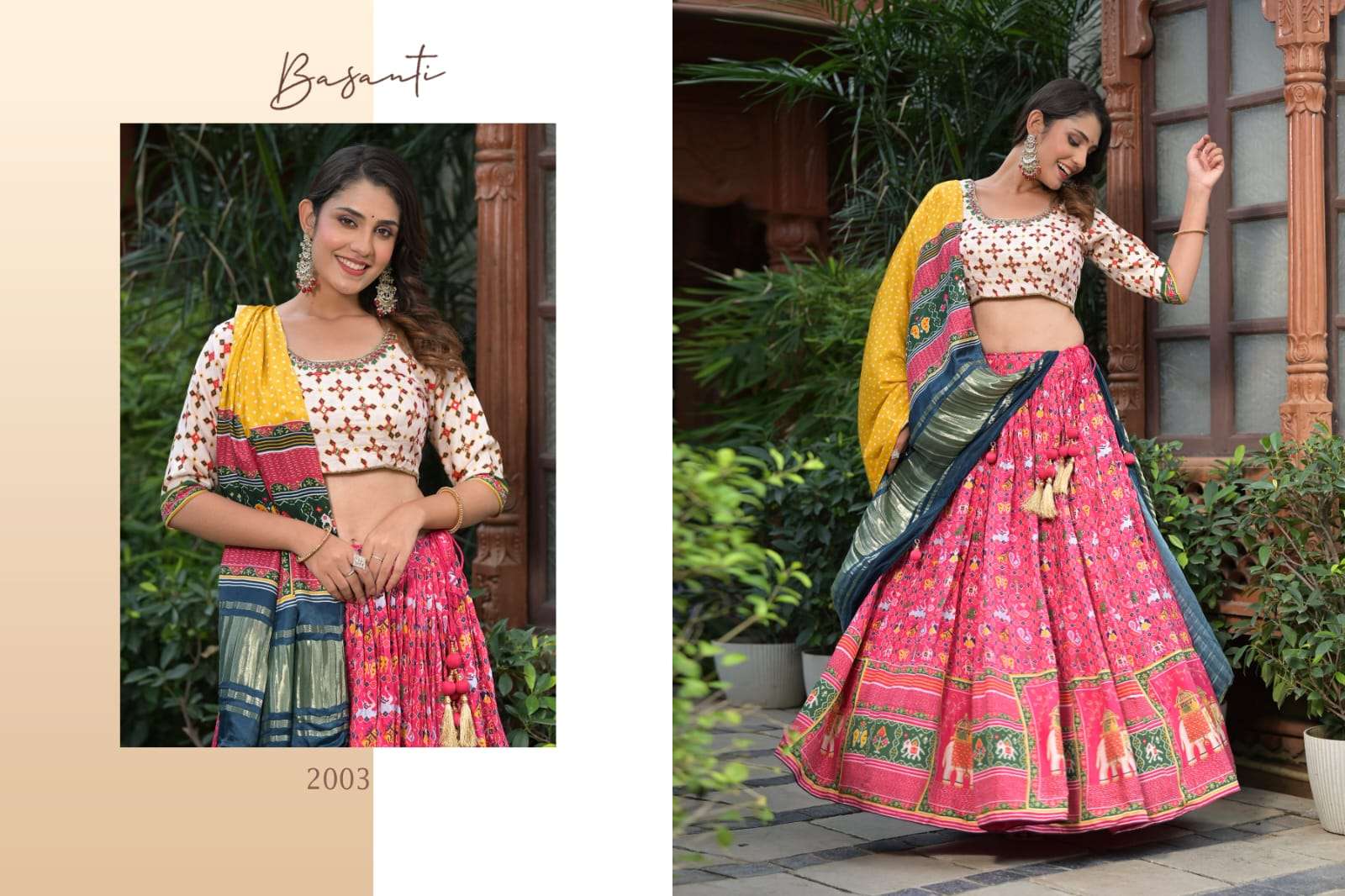 virasat present basanti vol 2 readymade navratri new design patola bandhani print lehenga choli