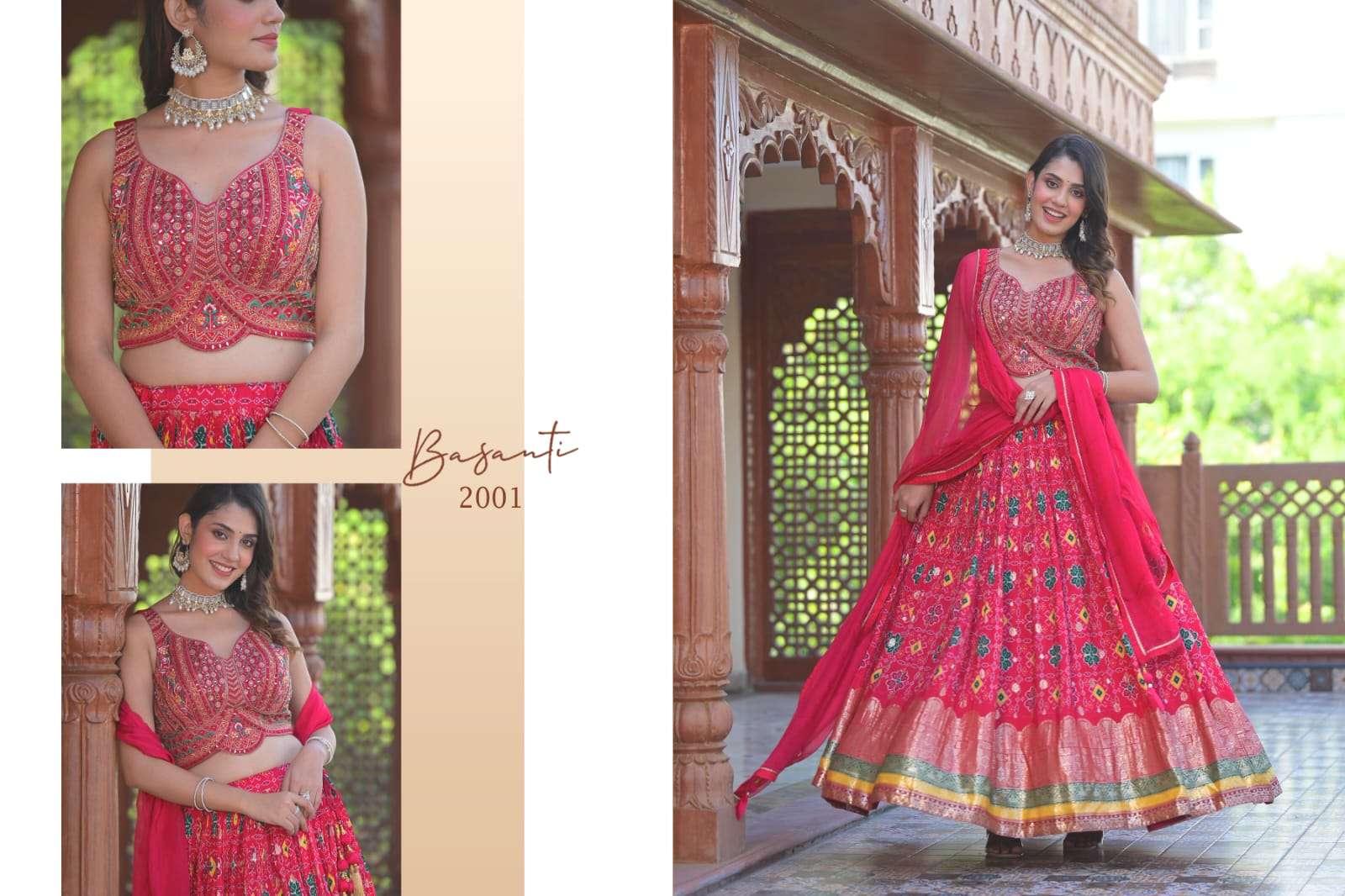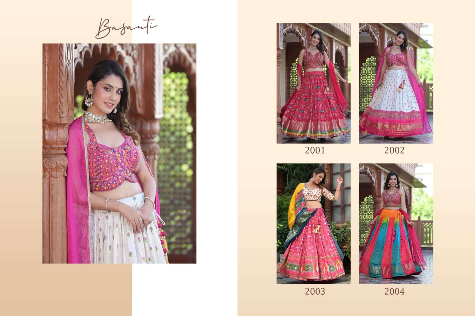 🙏🏻 We Have Launch Our New Series 🙏🏻 BASANTI VOL 02 DESCRIPTION :- DESIGNER PATOLA AND BANDHANI PRINT WITH DESIGNER CHOLI HENDWORK CHOLI AND DESIGNER LATKAN WTH CANCAN NET 2001 FABRIC:- PURE JEQARD SILK WITH PRINT DUPPATA :- SOFT PURE GEORGETTE Total 4 Designs. |