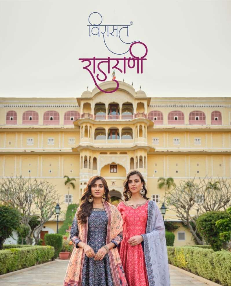 VIRASAT Virasat Vol RATRANI Designer Gown With Print Dupatta Exclusive Collection Total 5 Designs. RATE |