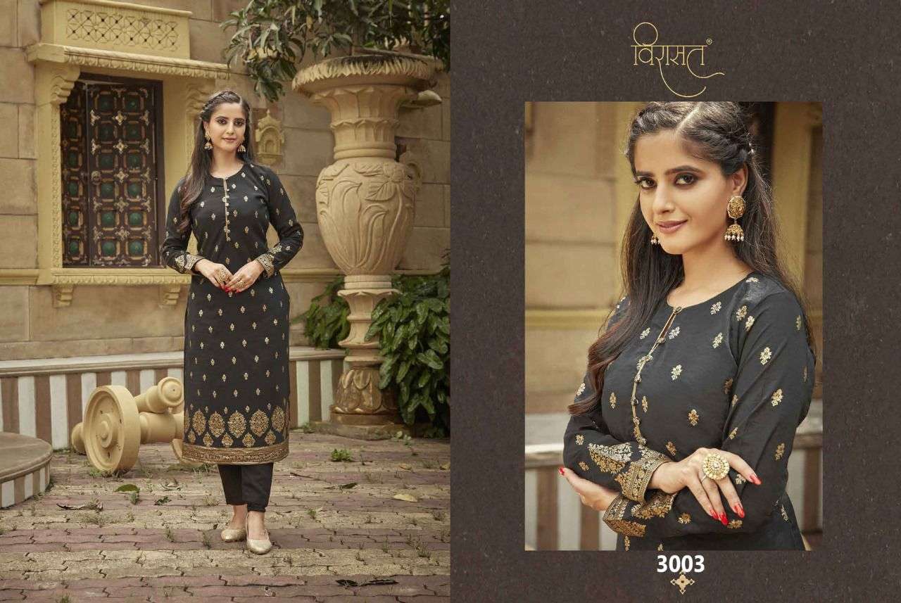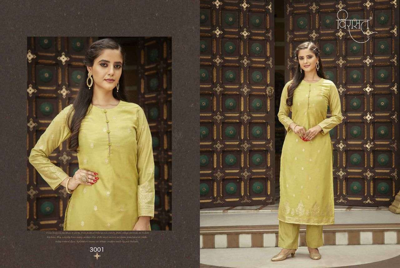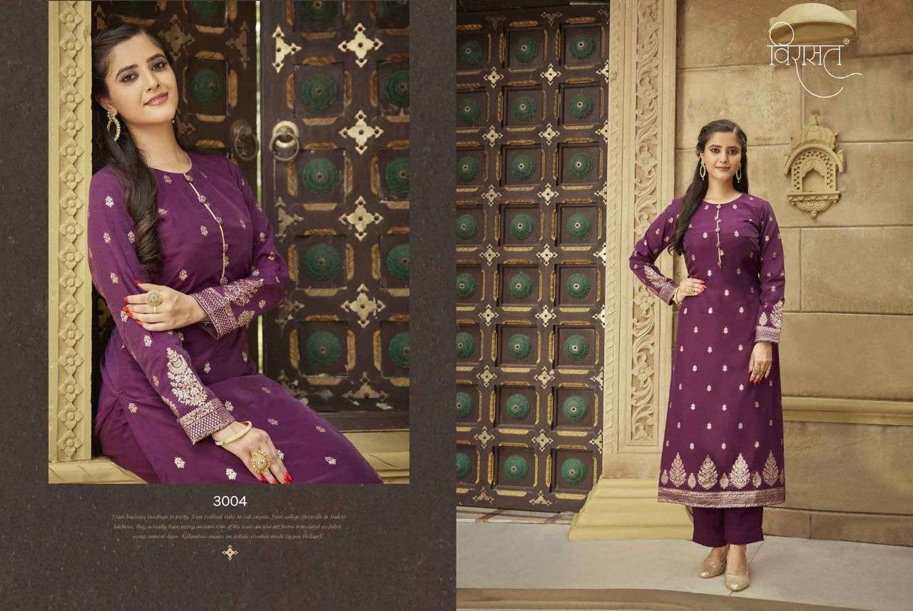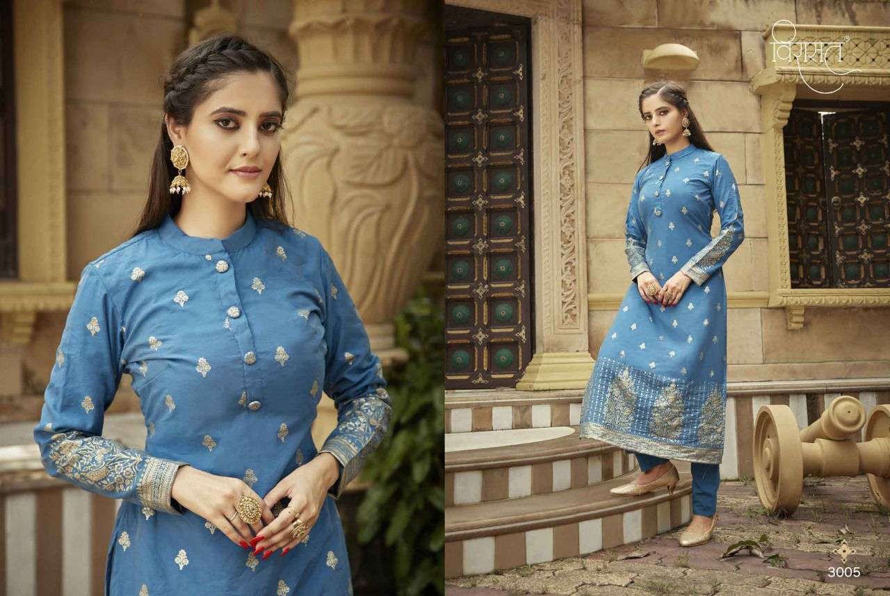 VIRASAT ROYAL 3001 SERIES Fabric Details:- Size (Full stitched) :- M(38),L(40),XL(42),XXL(44). Rate : 699/- per pcs GST : 5% |