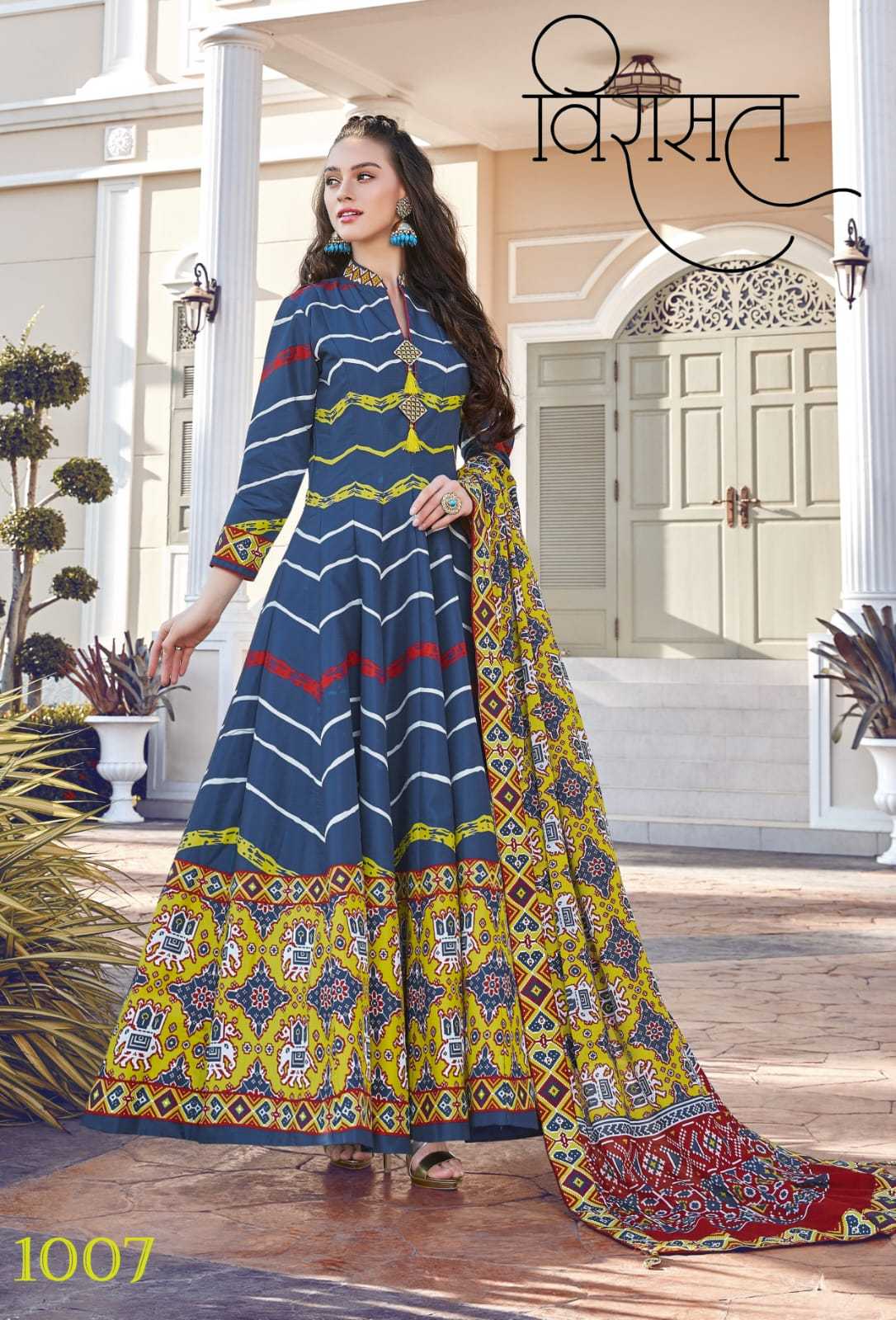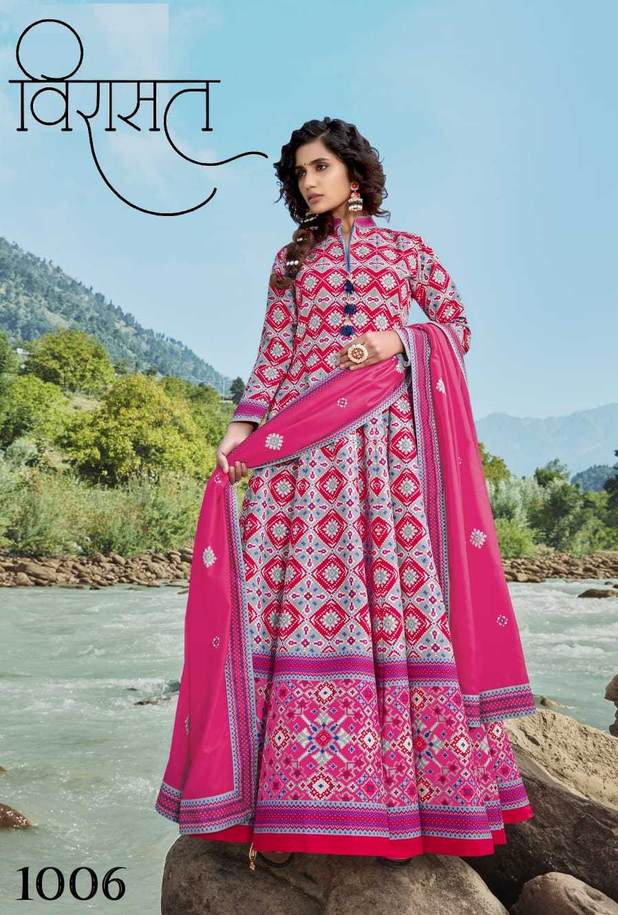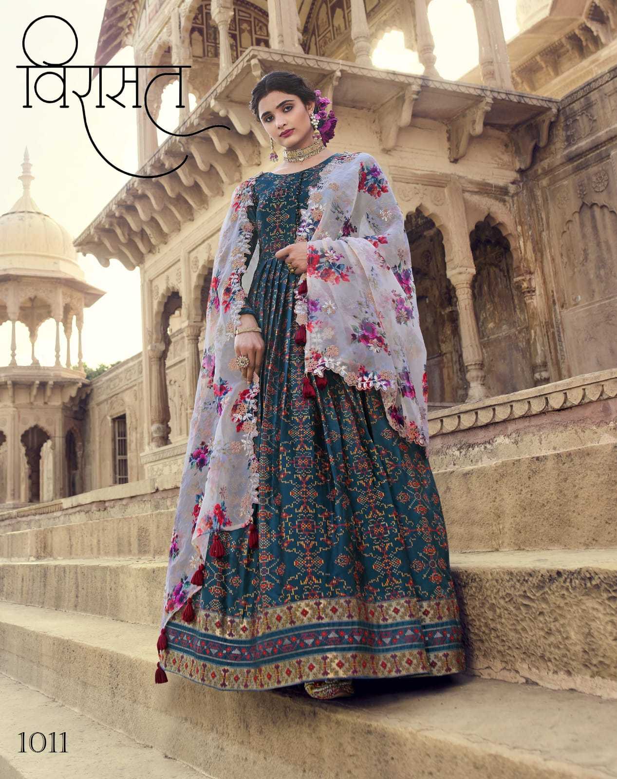 🤝We have launch our new series VIRASAT For upcoming seasons🤝 VIRASAT VOL ZIYA DESIGNER GOWN EXCLUSIVE COLLECTIONS WORK :- DESIGNER FLOWER PRINT LONG KALI AND DESIGNER BUTTN LATKAN INNER :- FULL INNER IS ALL DESIGNS WITH CANCAN NET -:Rate:- |