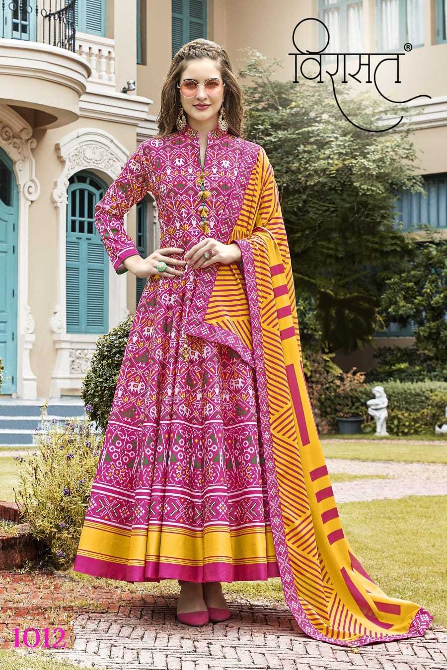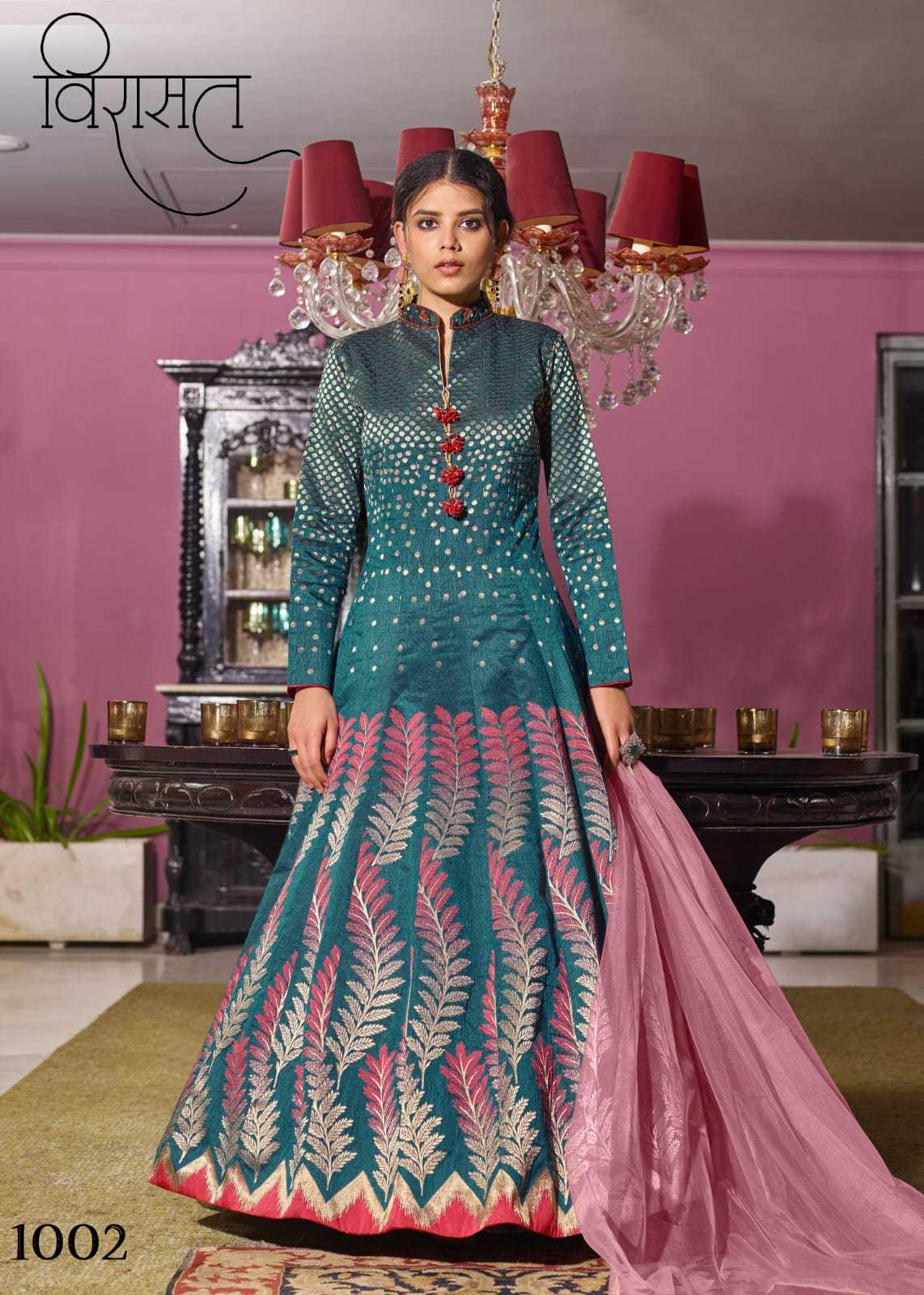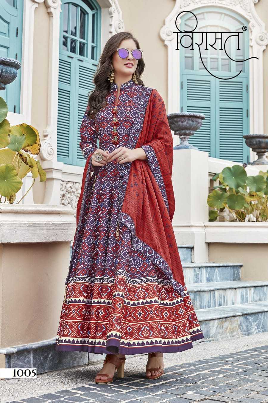 🤝We have launch our new series VIRASAT For upcoming seasons🤝 VIRASAT VOL ZIYA DESIGNER GOWN EXCLUSIVE COLLECTIONS WORK :- DESIGNER FLOWER PRINT LONG KALI AND DESIGNER BUTTN LATKAN INNER :- FULL INNER IS ALL DESIGNS WITH CANCAN NET -:Rate:- |