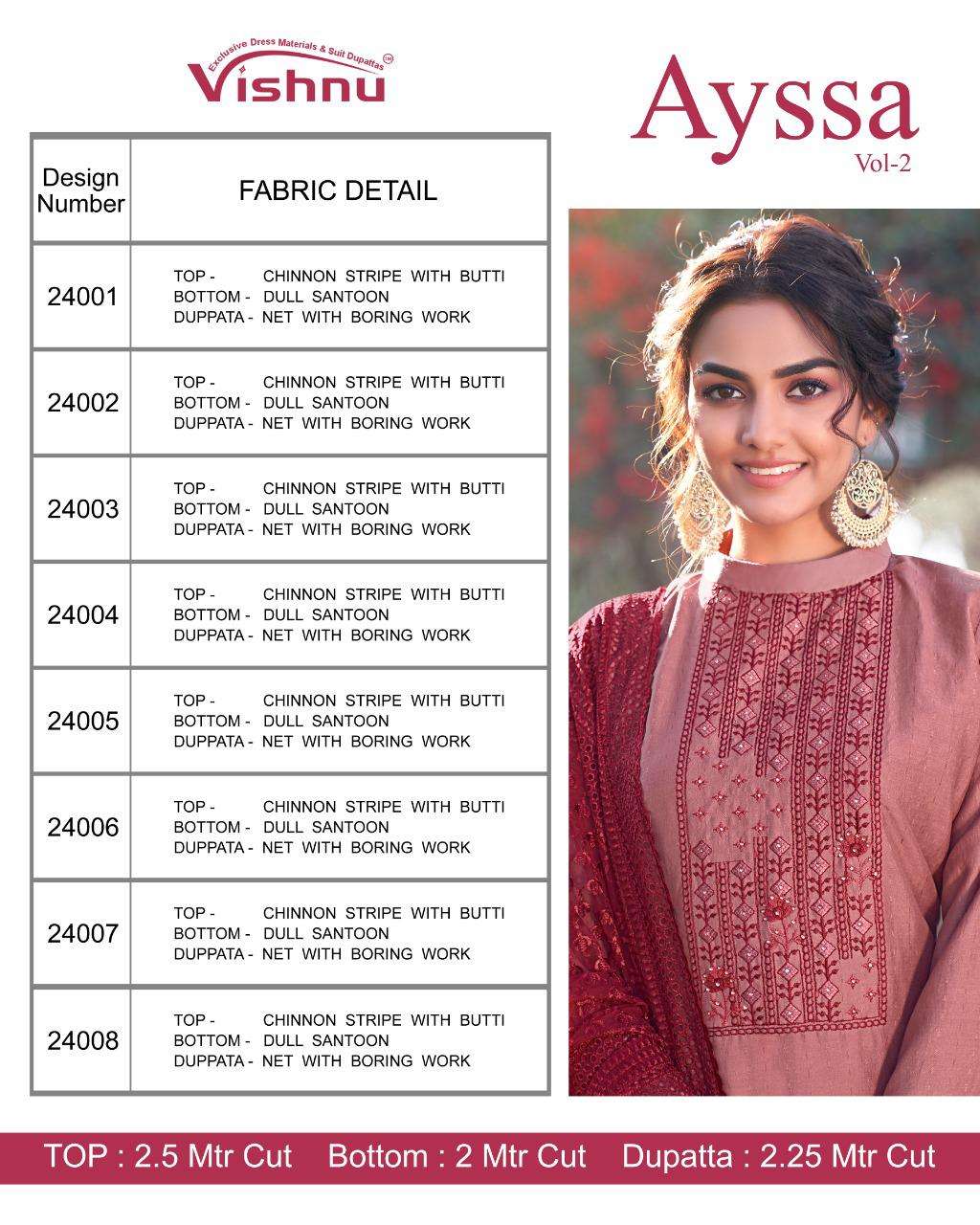 vishnu ayssa vol 2 chinnon stripe summer special ladies suits collection