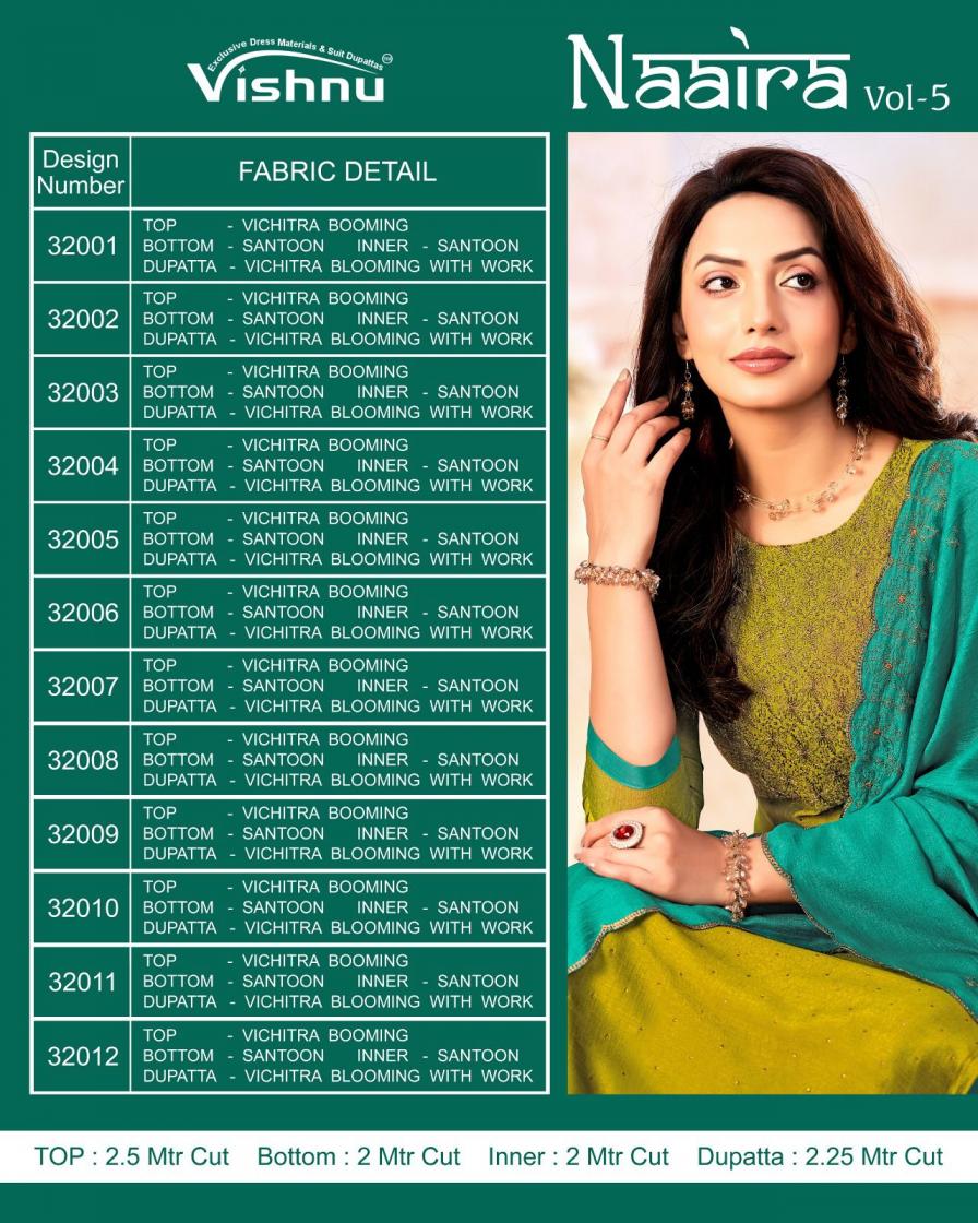 vishnu impex naaira vol 5 vichitra booming dress materials online