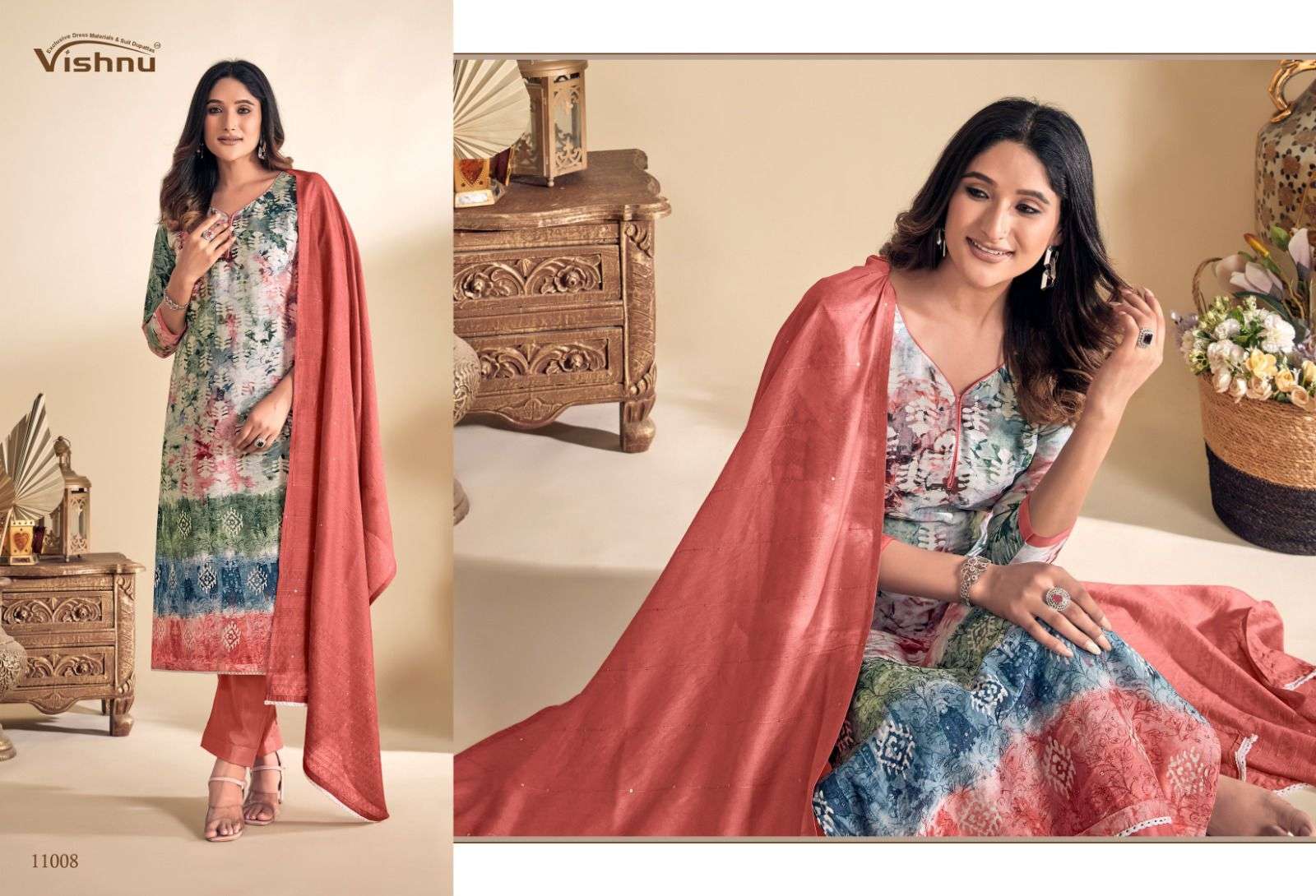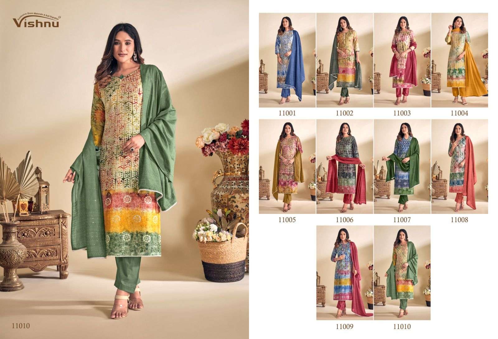 Vishnu Presents Latest Collection Launched on 04-10-2023. Presenting Beautiful collection of 10 PCS with Unstitched .