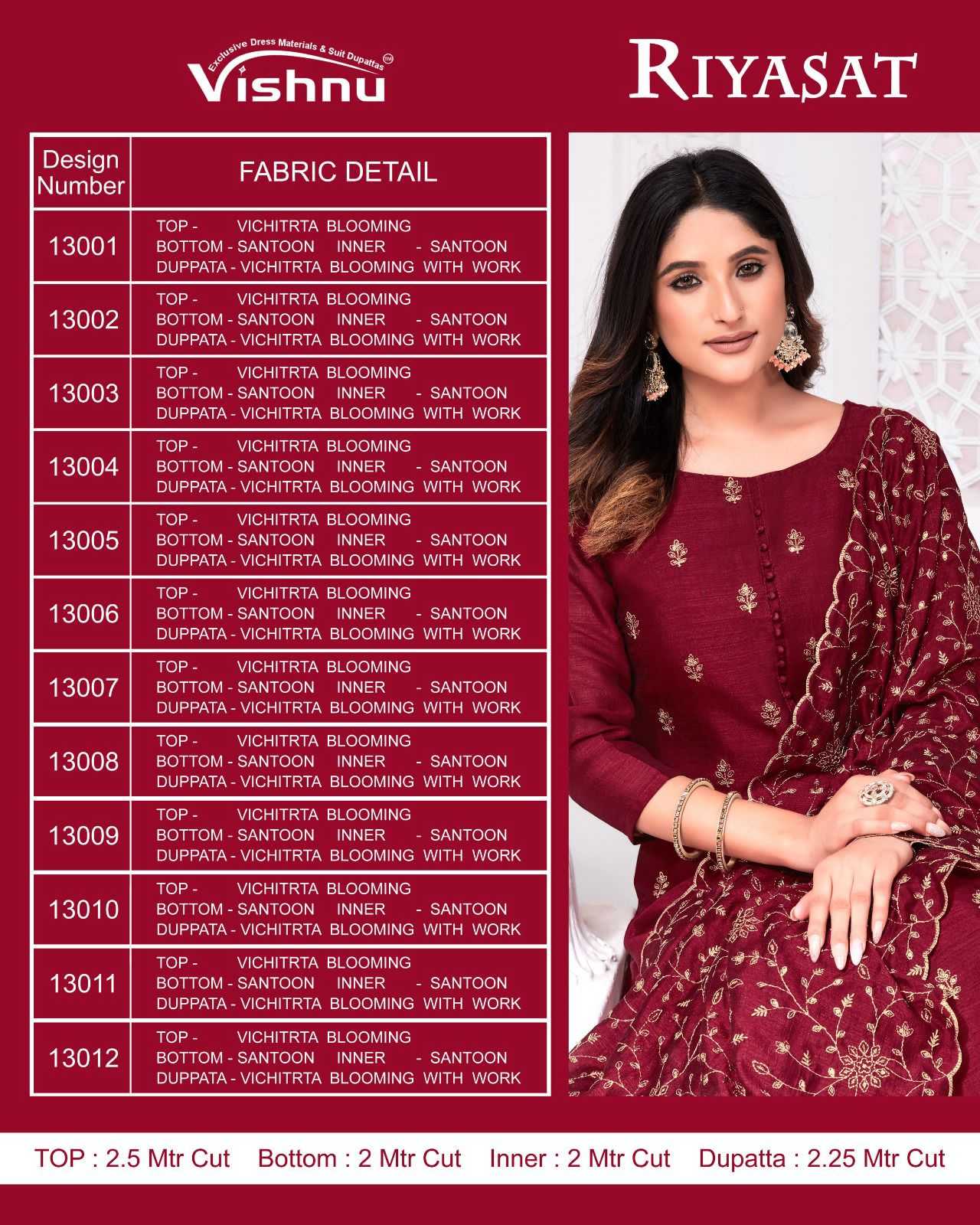 vishnu impex riyasat 13001-13012 festive wear salwar kameez material