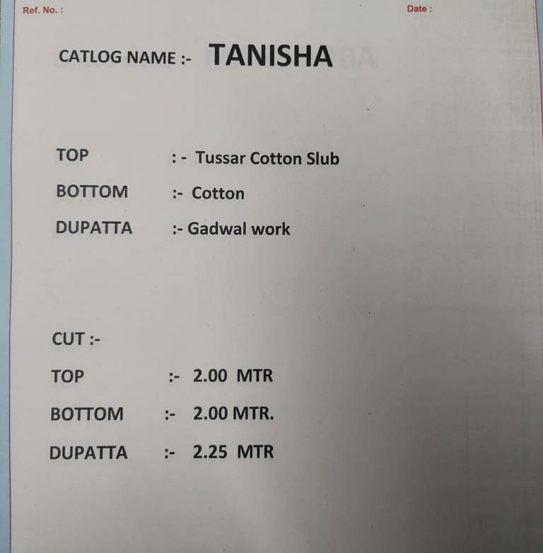 Catlog name - TANISHA . Rate- 795 per pcs . Set to set. GST 5 Percent Extra. Delivery from today |