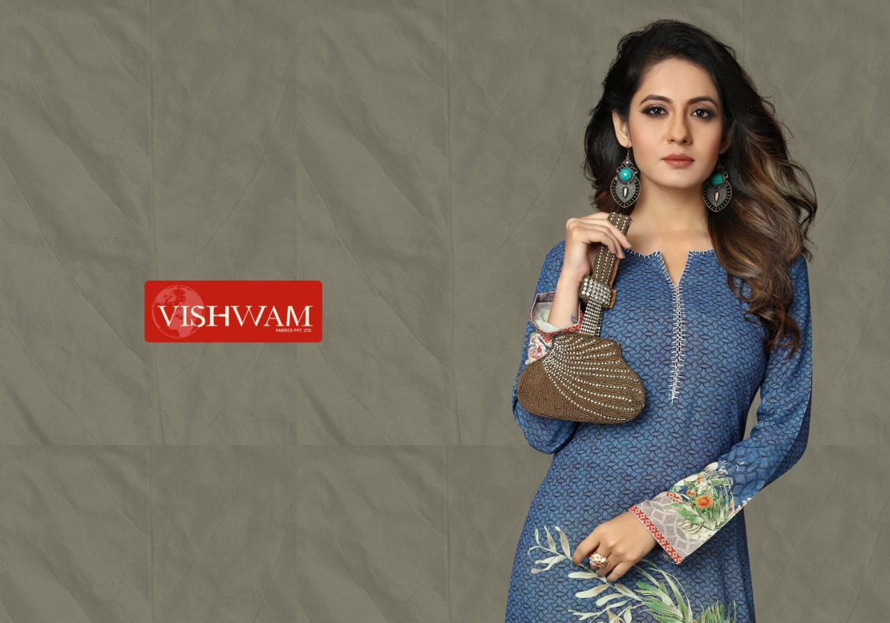 Vishwam Fabrics Presents Latest Collection Launched on 14-09-2019. Presenting Beautiful collection of 7 PCS with Unstitched .