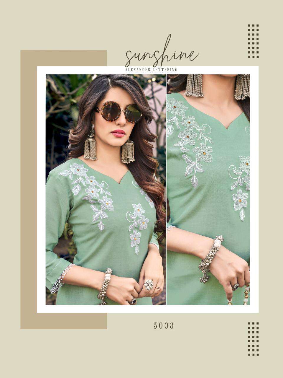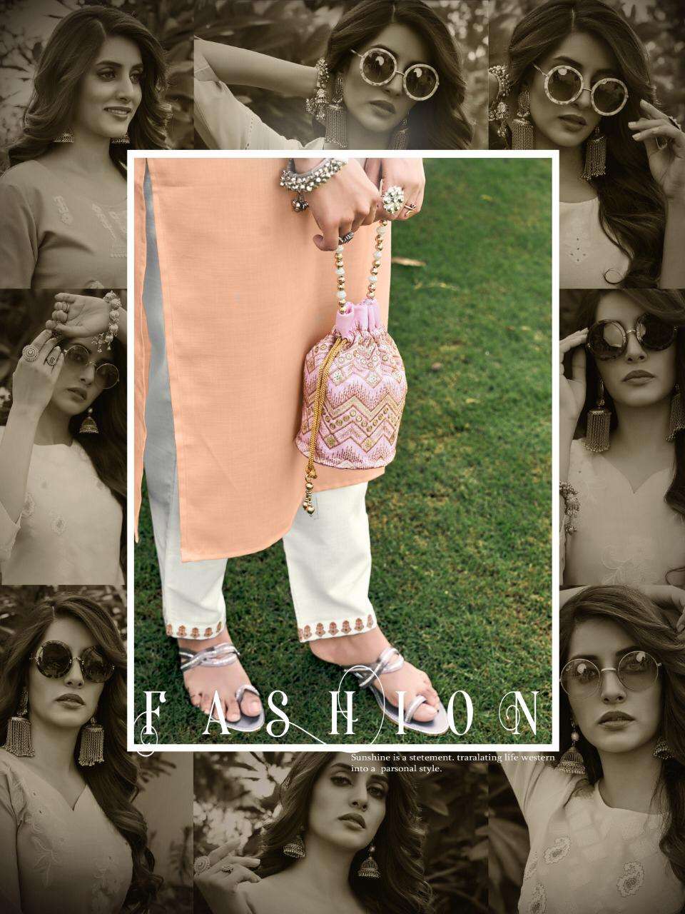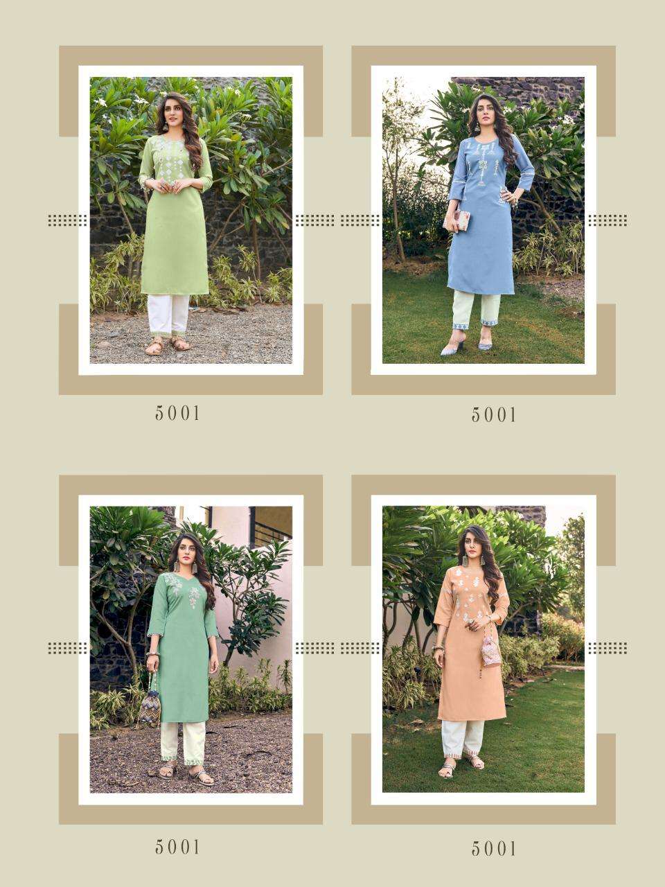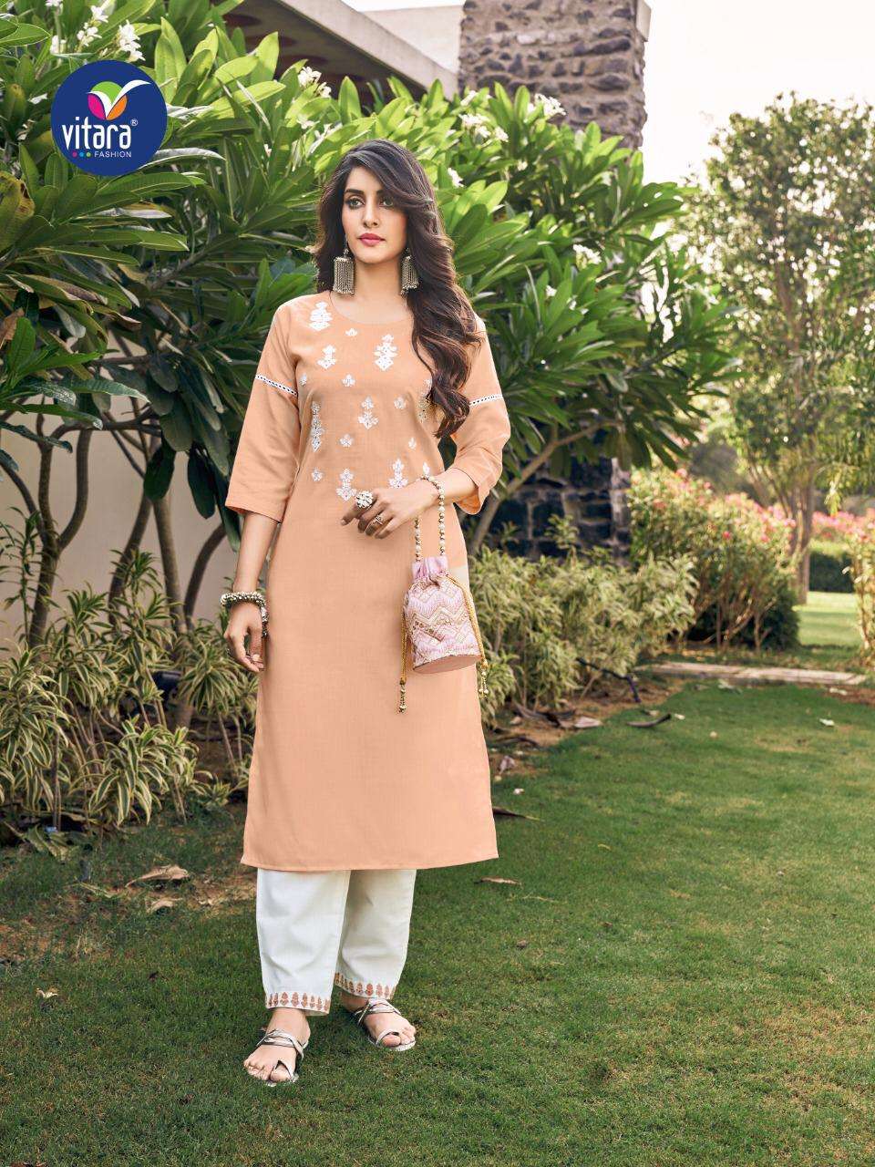 vitara fashion  launches exclusive designer  kurti with pent       Catalogue name-  ARDAS        Fabric- heavy magic slub with embroidery size-m(38),L(40),xl(42),xxl(44)   Length TOP - *46 * Designs- 4 Rate:- 699/- GST +5% ADD ON BILL AMT Set to set |