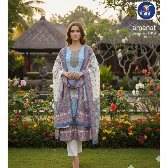 vitara fashion amanat muslin weaving jacquard fully stitch pakistani combo dress