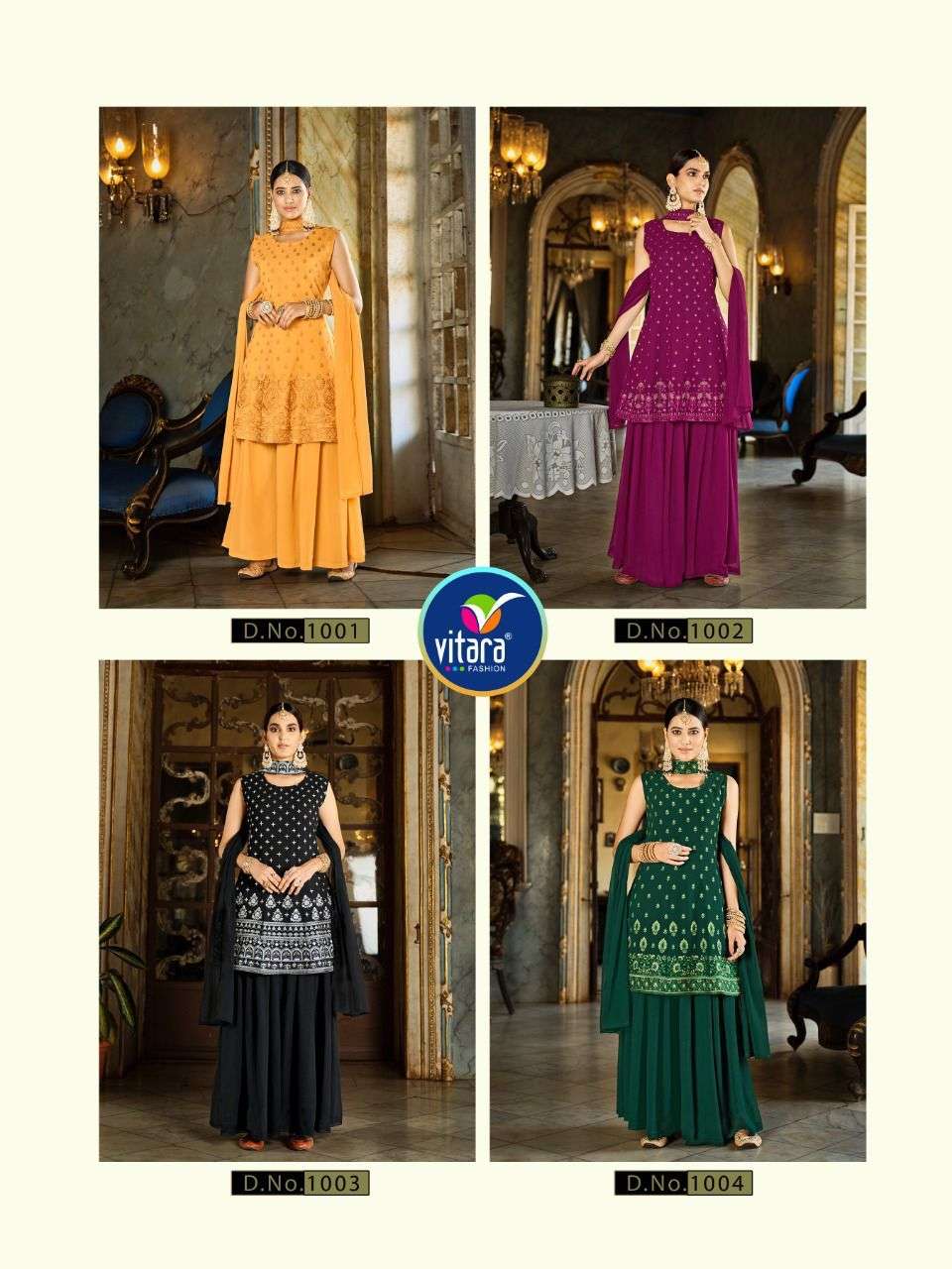 vitara fashion launches exclusive designer kurti sarara with dupatta *🎀 sarara - fox jorjet dupatta-fox georgette size-,L(40),xl(42),xxl(44), ☣Designs- 4 rate -1395/- per pcs |