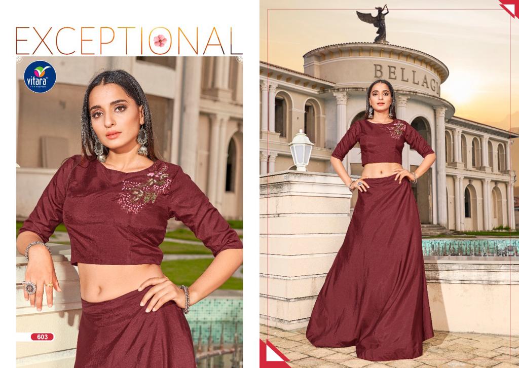Vitara Fashion Launch Magic Vol 6 Arion Silk Latest Collections Crop Top With Skirt Supplier