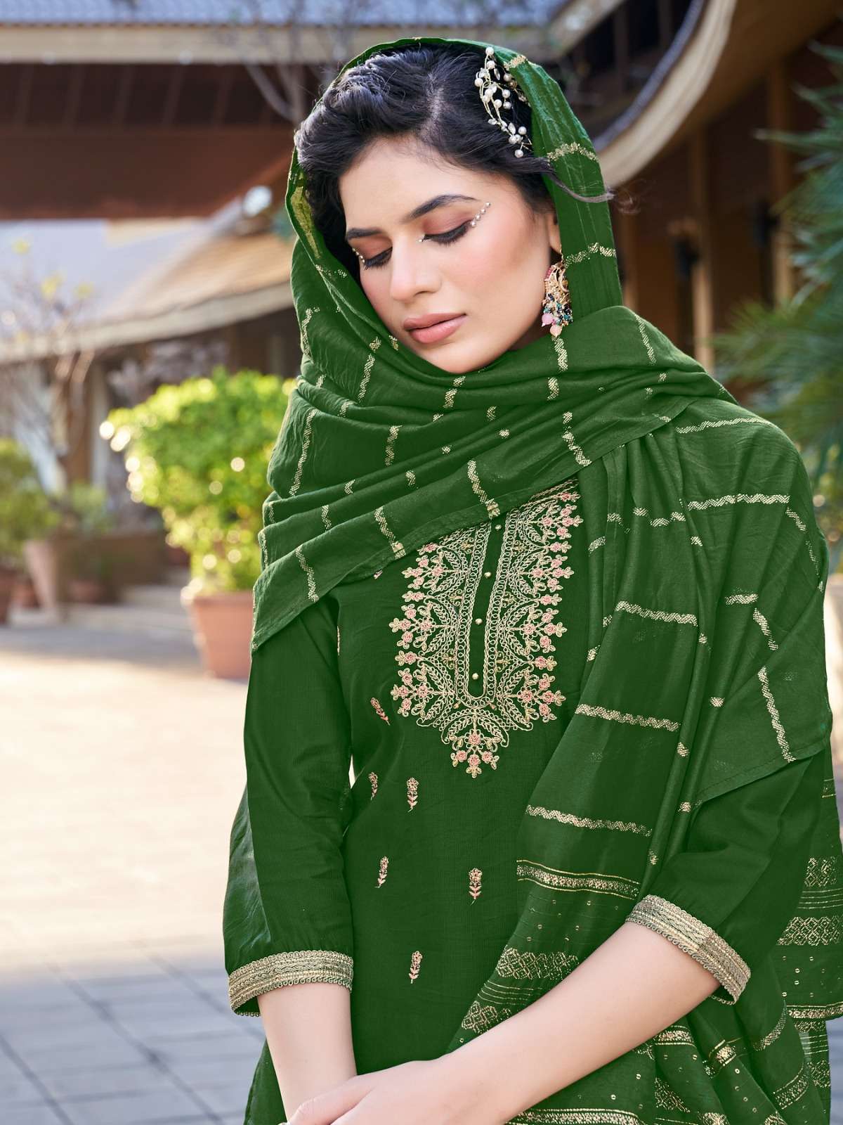 🎀 vitara fashion launches exclusive designer kurti pent with dupatta🎀 pent - *DELTA silk * dupta -* viscos jari weaving dupta * size-m (38)L(40),xl(42),xxl(44)xxxl(46) ☣Designs- 4 🔴Rate:- 1099/- |