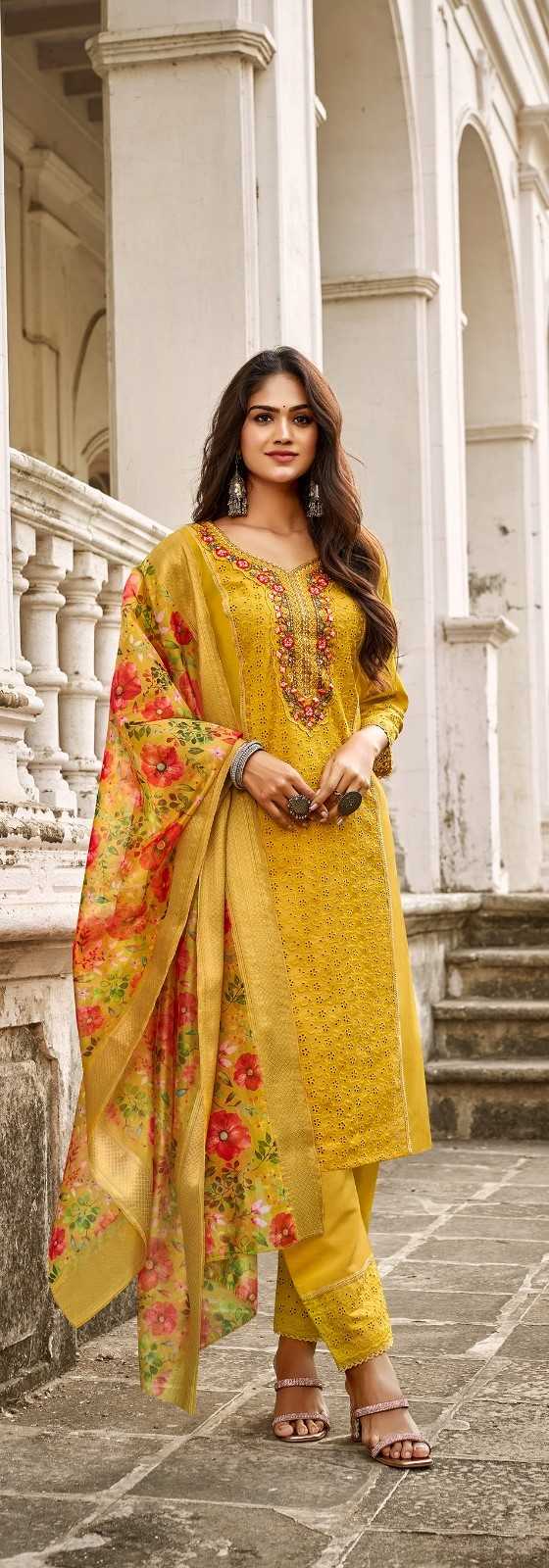 Vitara fashion launched pic & choose 3pcs Combo set Name - PARIMALA fabric🎀 *TOP- heavy roman silk with borrer work & emb. 🏵️*Bottam-**- roman silk 🌻dupatta- organza silk with jcrd border 💥size -m to 2xl 🌟design-4 RATE-1095/- |