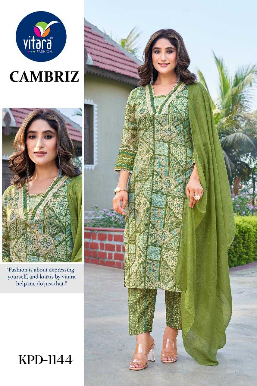 Vitara fashion present cambriz full stitched cotton classic combo set top bottom dupatta