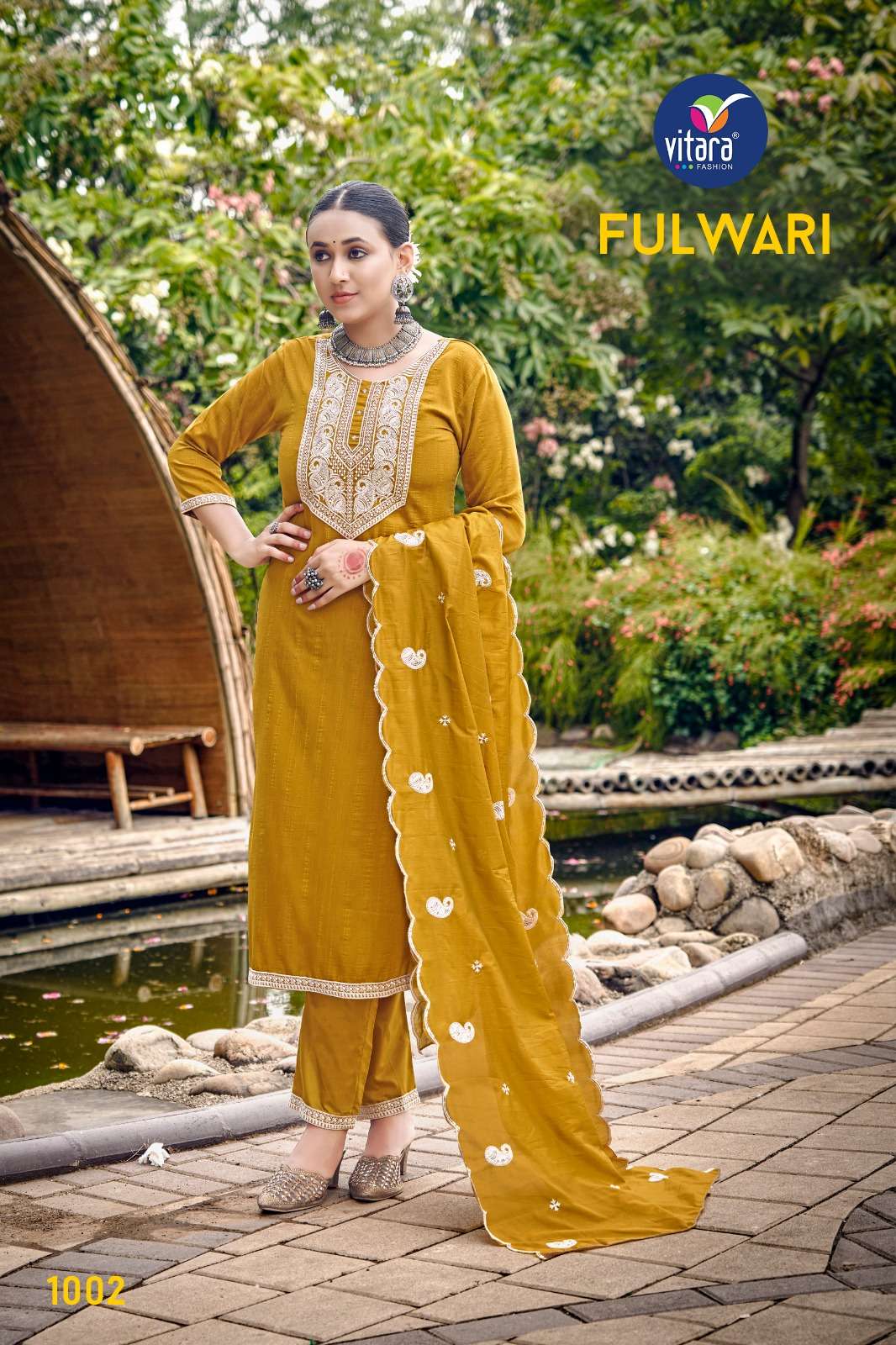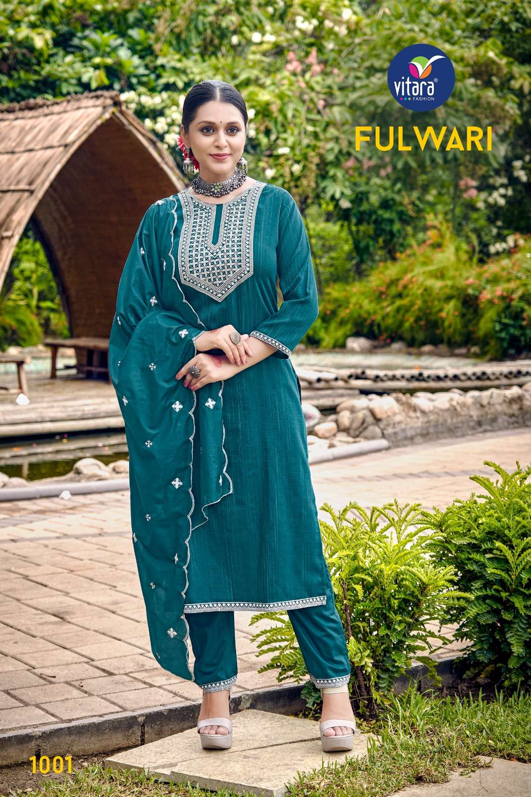 vitara fashion present fulwari viscose fancy kurti with pant and dupatta combo set