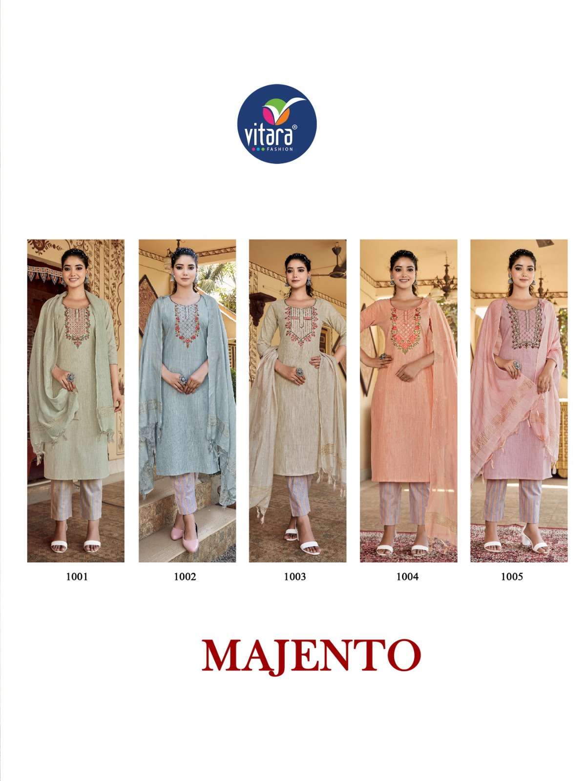 vitara fashion present majento fancy designer adorable kurti with pant and dupatta
