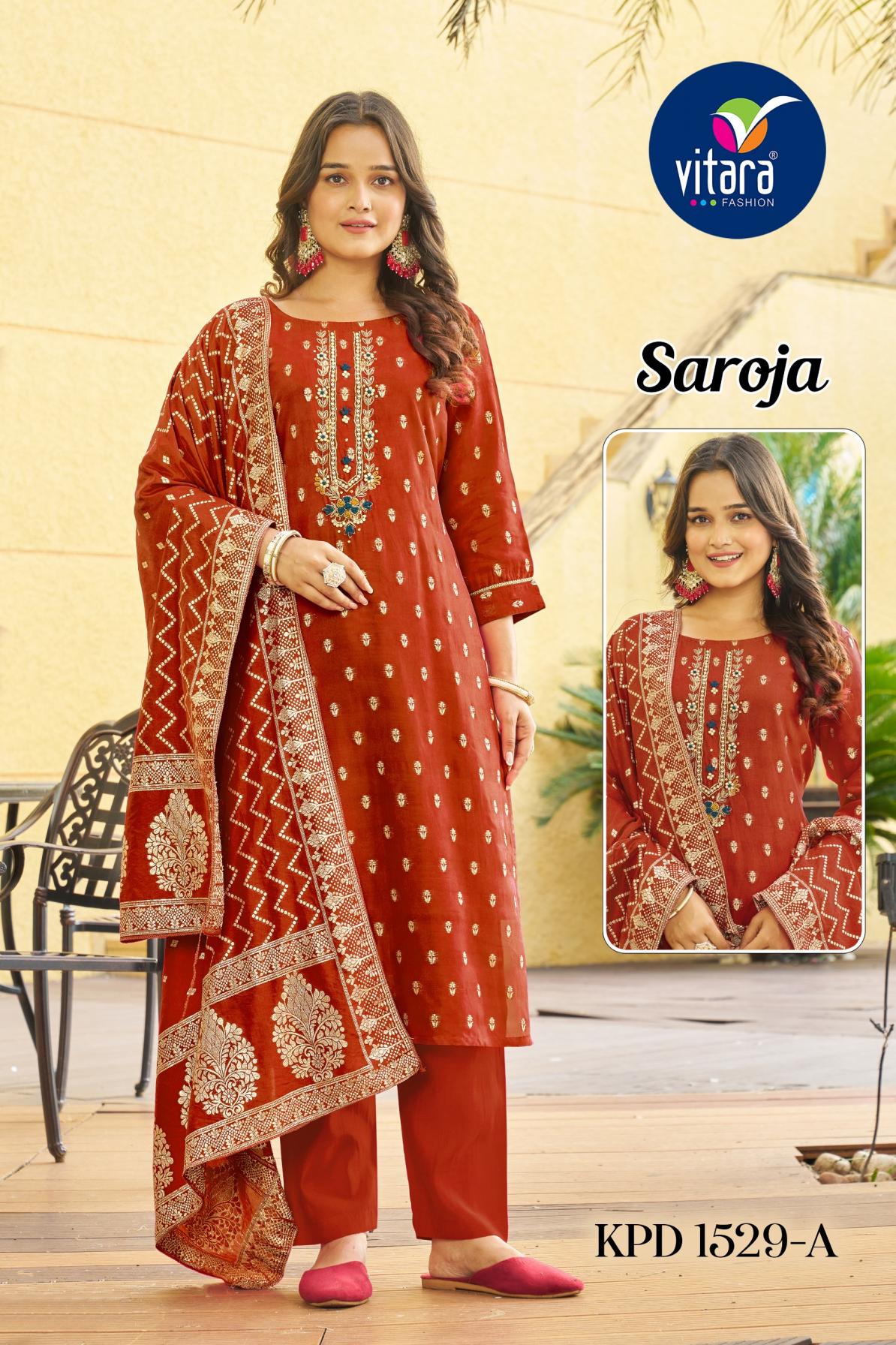 .Vitara fashion launched pic & choose 3pcs Combo set Name - SAROJA fabric🎀 *TOP-*pure viscos fabric with handwork 🏵️*Bottam-*-viscos santoon* 🌻dupatta- pure viscos fabric with jecrd 💥size - m to 2xl 🌟color- 4 RATE- 1230/- |