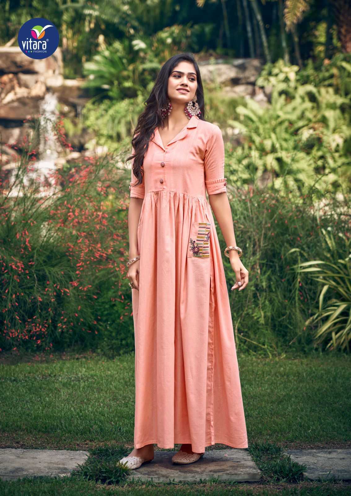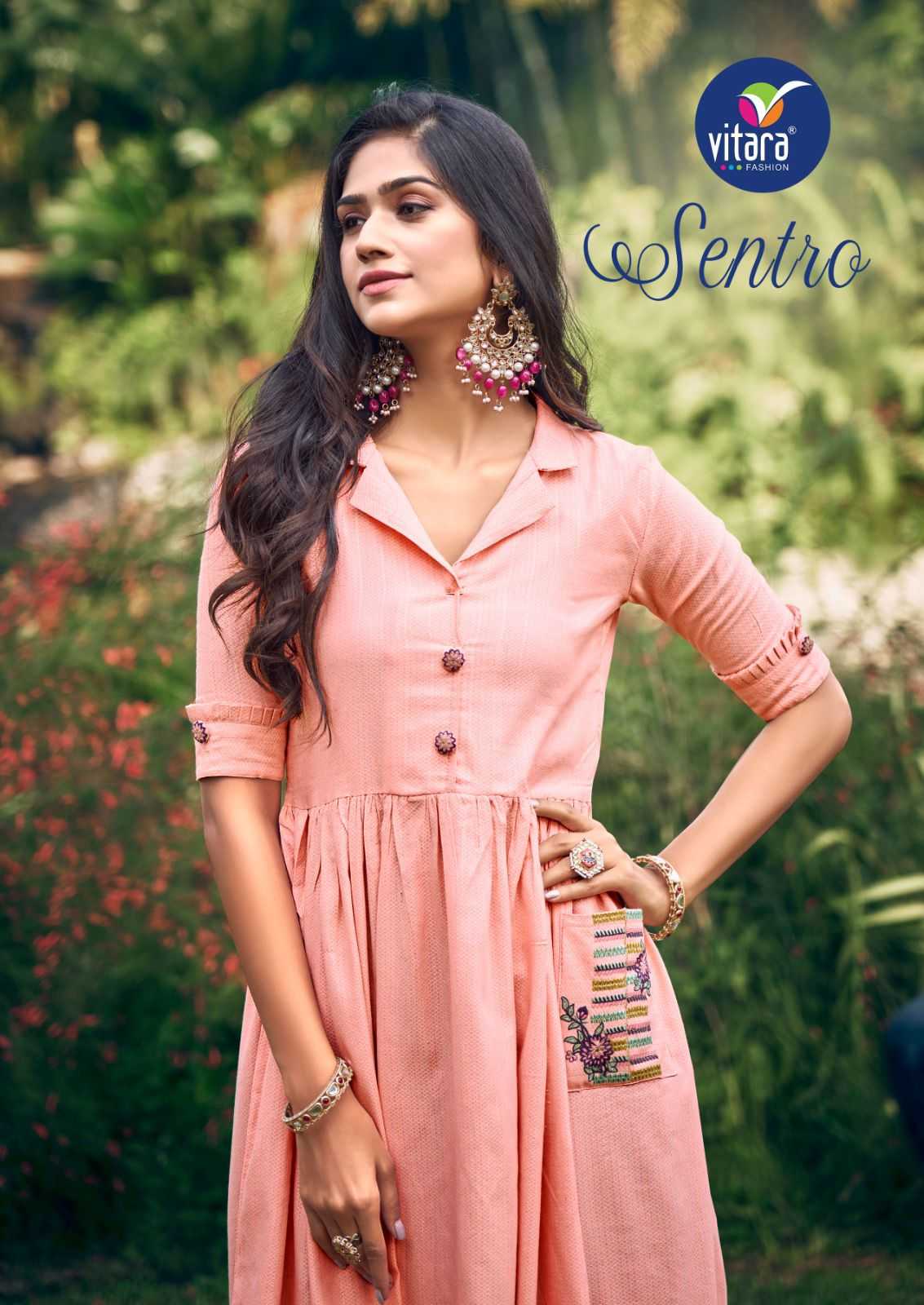 vitara fashion sentro fancy adorable stitch long cotton kurtis