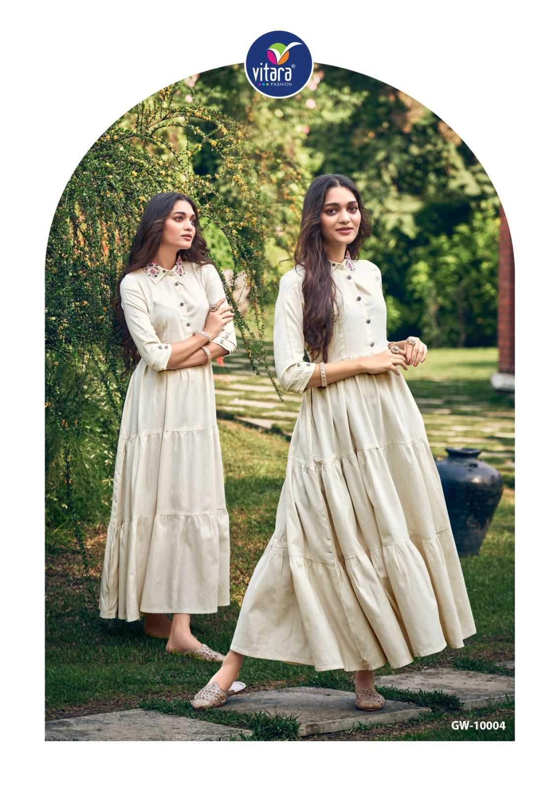🎀 vitara fashion launches exclusive designer long gown🎀 fabric-* cotton weaving fabric withe embrodry size-m (38)L(40),xl(42),xxl(44) ☣Designs- 4 🔴Rate:- 850/- GST +5% ADD ON BILL AMT |