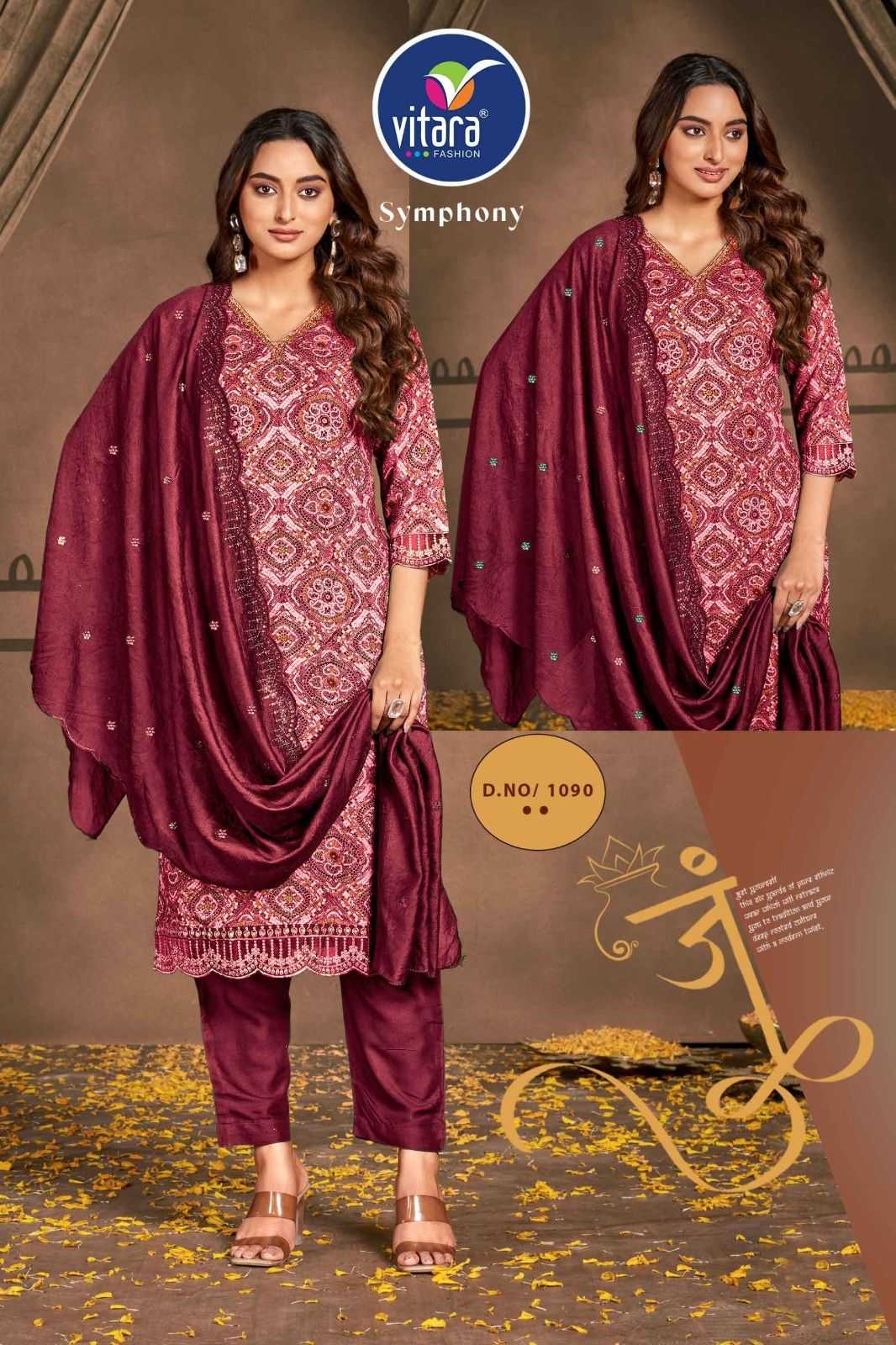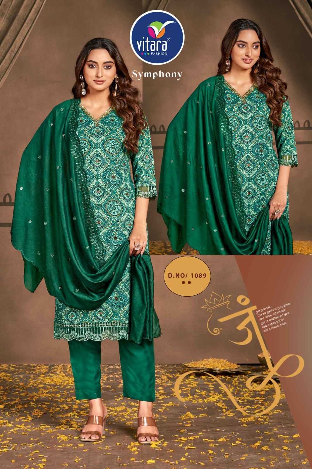 Vitara fashion launched pic & choose 3pcs Combo set Name - *SYMPHONY* fabric🎀 *TOP- heavy reyon flower print with khatli work 🏵️*Bottam-**- aurjent reyon fabric 🌻dupatta- heavy viscose sequence emb.with cutwork 💥size -m to 2xl 🌟design-4 RATE-1010/- ♻️*GST +5% ADD ON BILL AMT* |