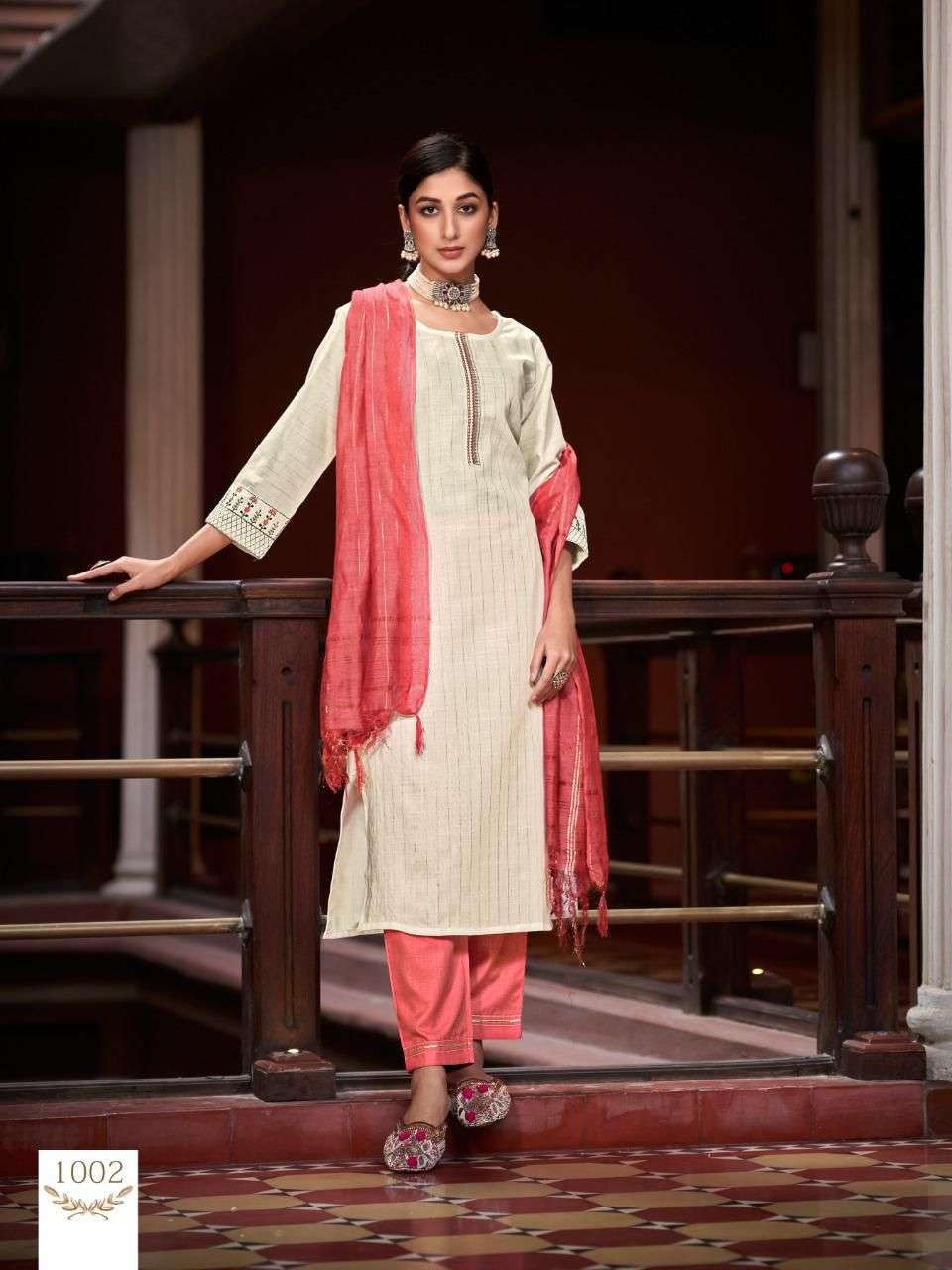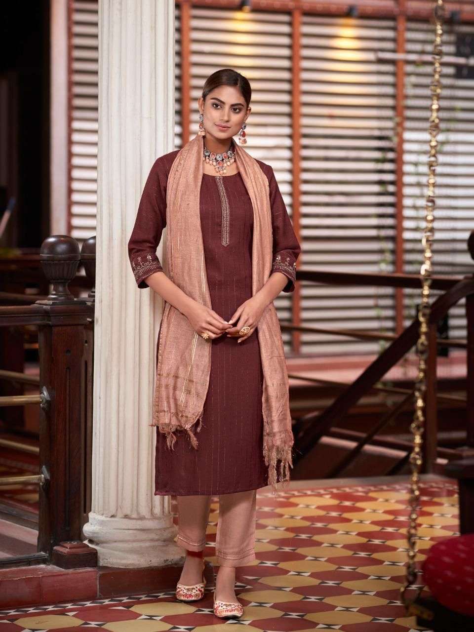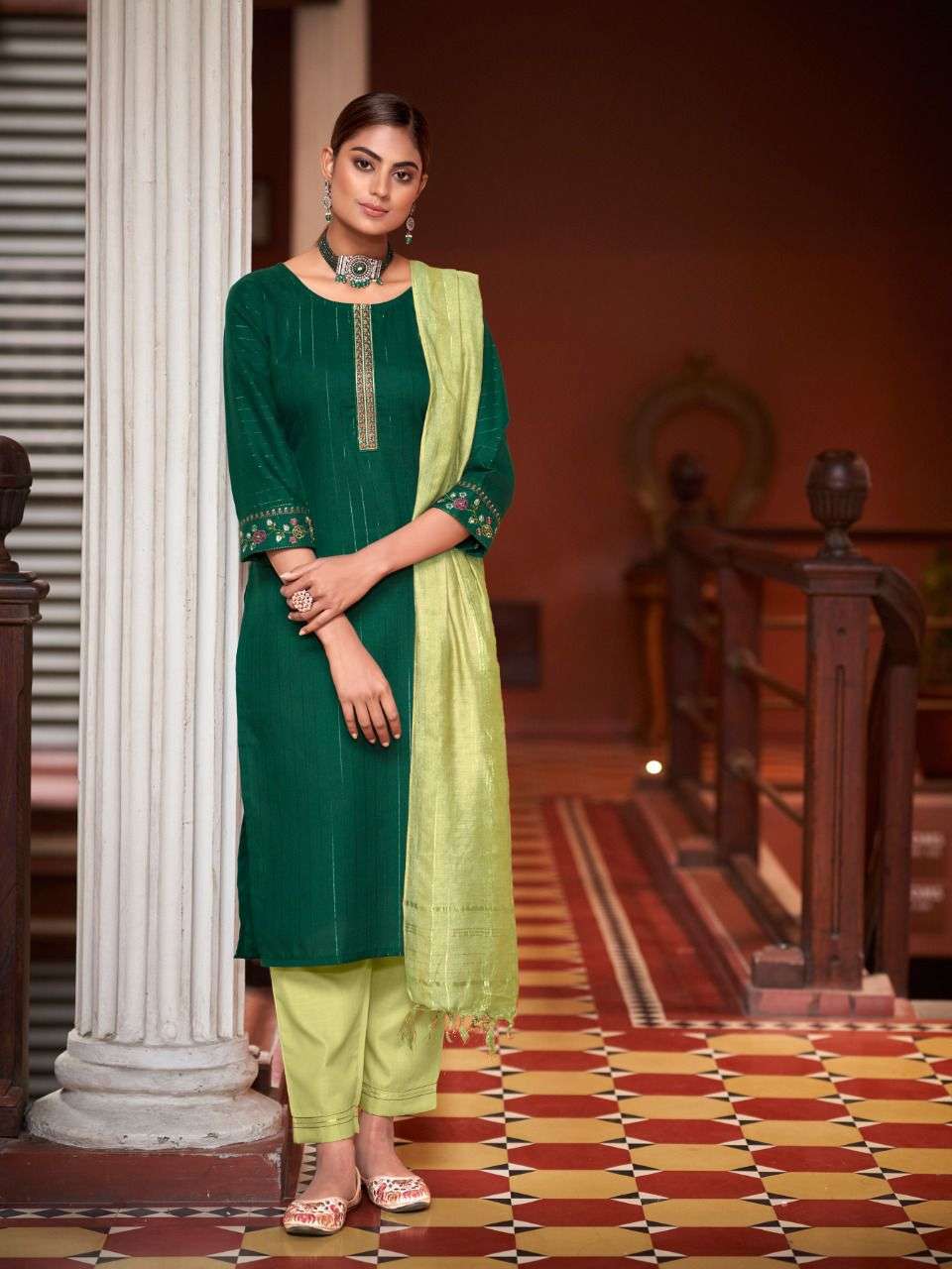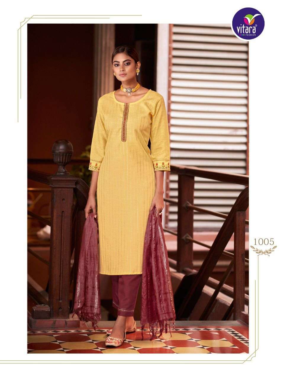 🎀 *vitara fashion launches exclusive designer kurti pent with dupatta *🎀 pent - magic slub dupatta- viscose chanderi with zari line size-m(38),L(40),xl(42),xxl(44) ☣Designs- 6 rate - 699 per pcs GST +5% ADD ON BILL AMT |