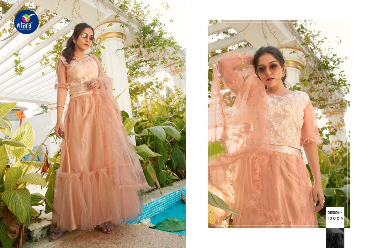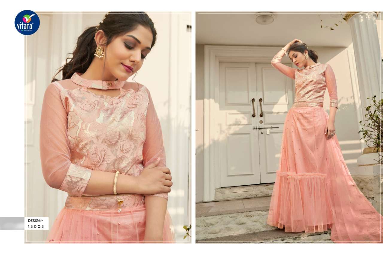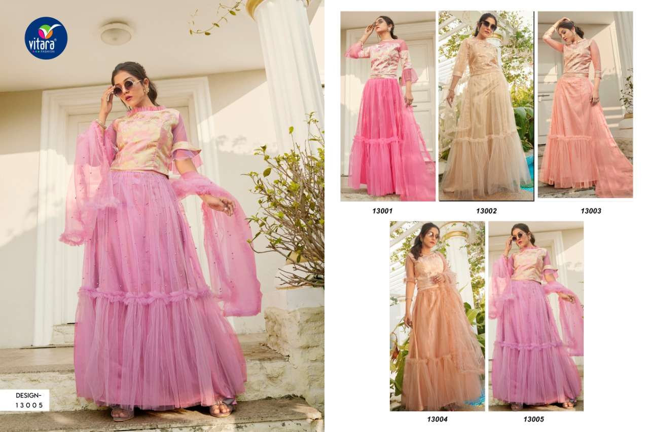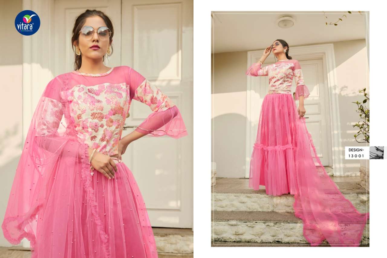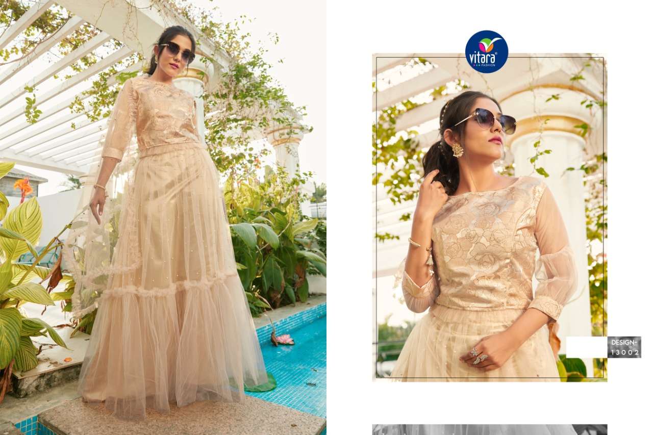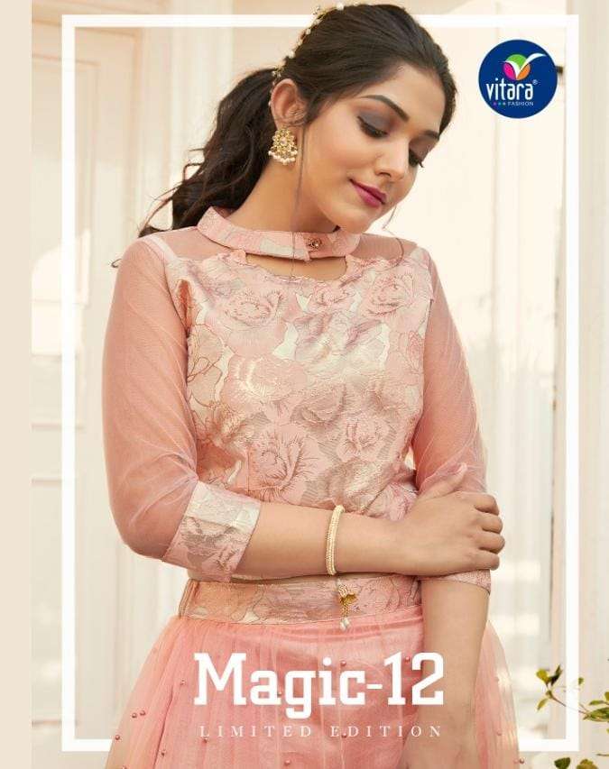 vitara fashion  launches exclusive designer  crop top       Catalogue name-  magic-12        Fabric- *adino silk * skirt-net with moti work ( ultra satin lining) dupta - nett with moti work Size - m-(38) L-(40),XL-(42) Designs- 5 Rate:- 999/- GST +5% ADD ON BILL AMT |