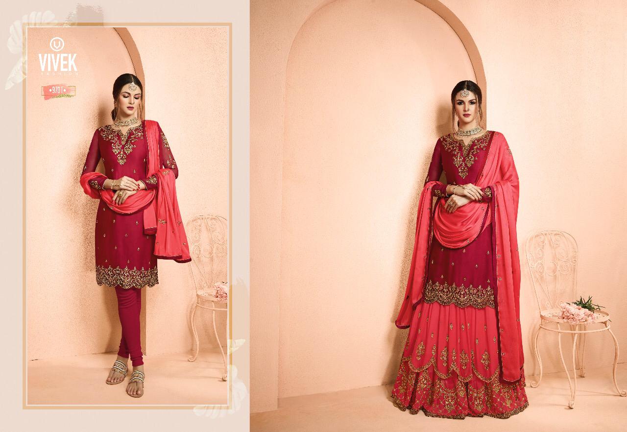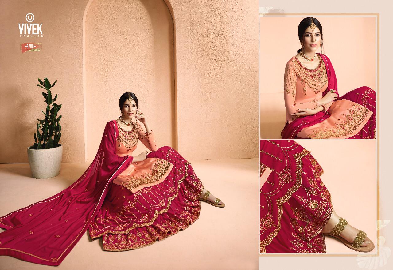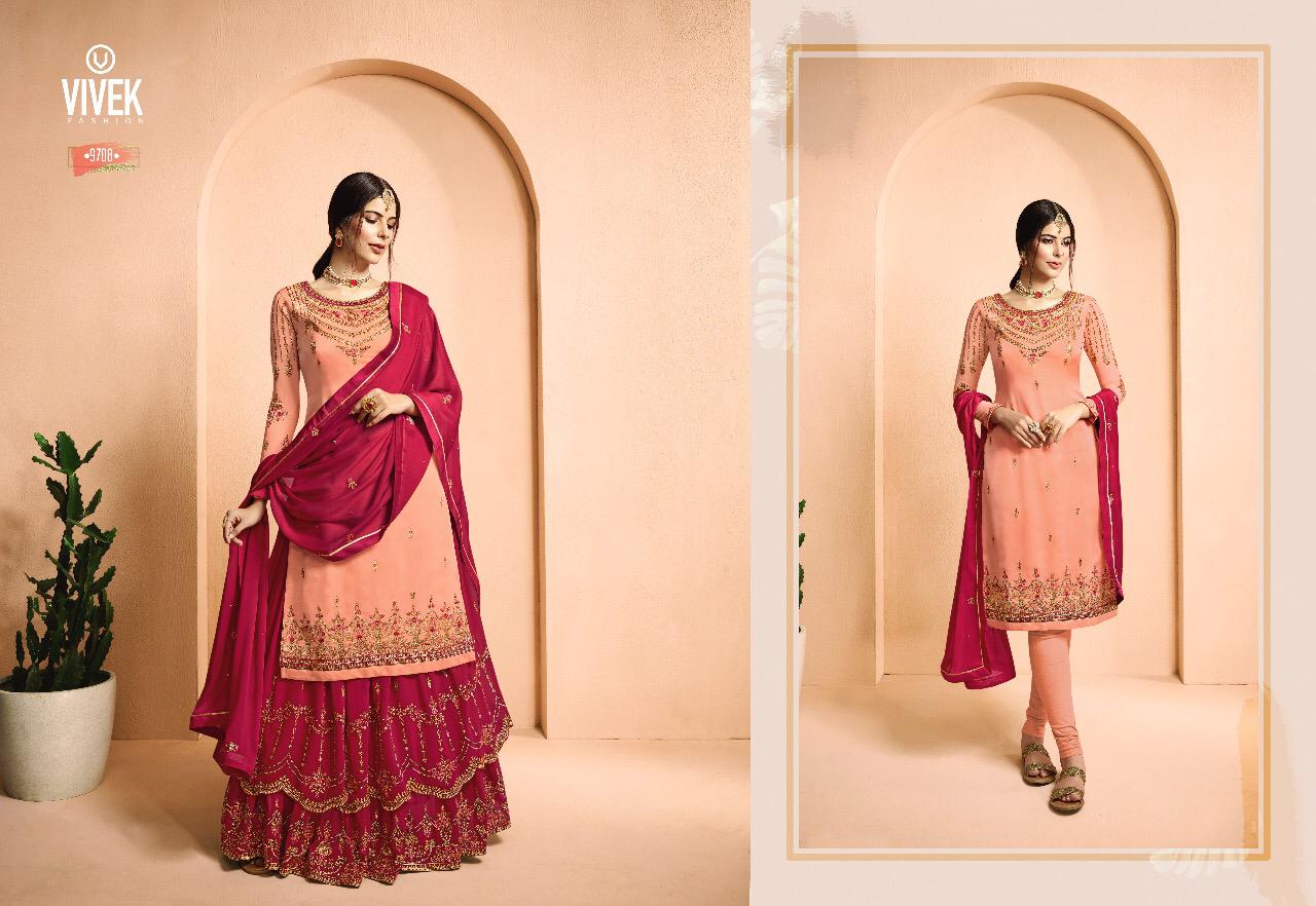 Vivek Ameen Vol 5 Satin Georgette Embroidery Lehanga Style Salwar Suit Wholesale