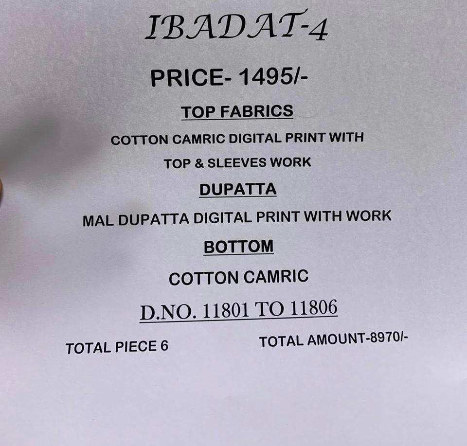 Vivek Fashion Ibadat Vol 4 Cotton Cambric Salwar Kameez Online Supplier