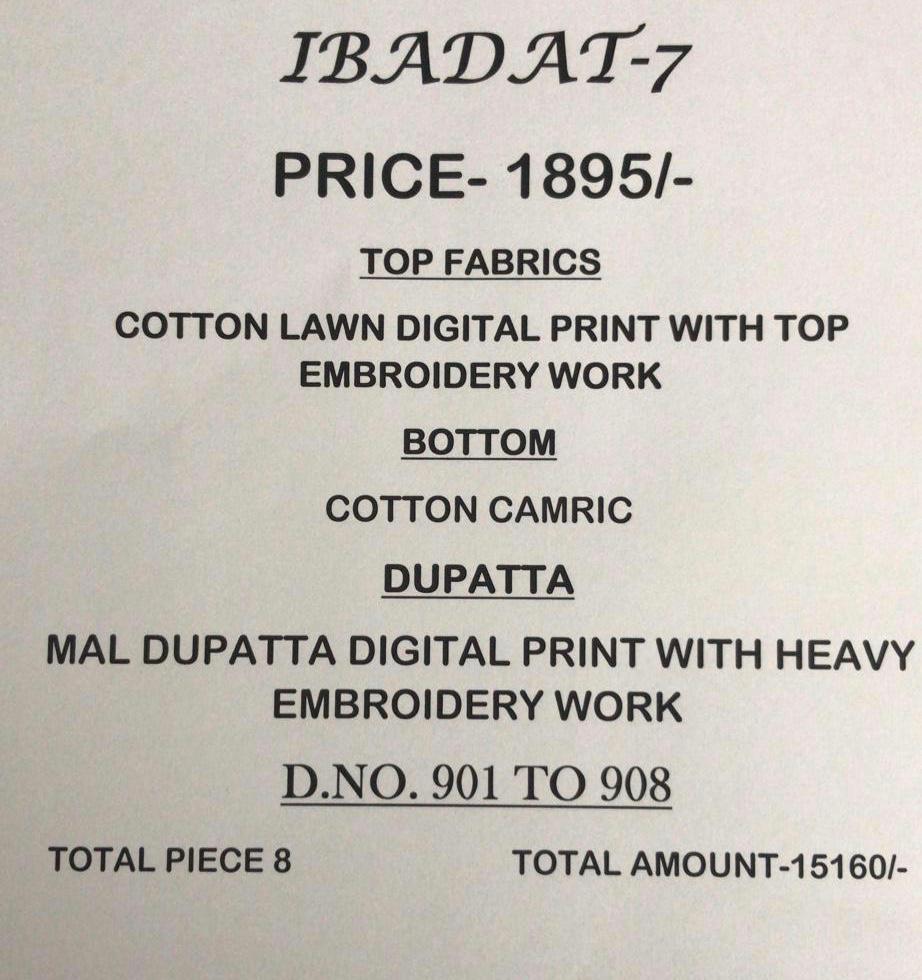 Vivek Fashion Ibadat Vol 7 Lawn Cotton Heavy Ladies Suits Exporter