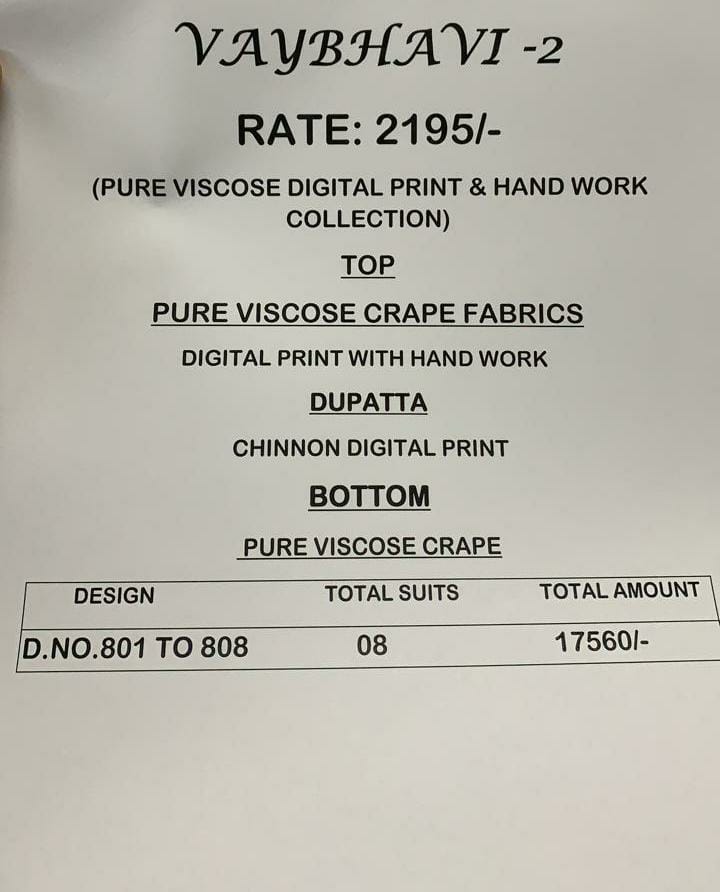 Vaybhavi Vol 2 Pure viscose digital prints with handwork with chinon digital prints Dupatta Price- 2195/- Pcs - 08 Delivery 4-5 Days |