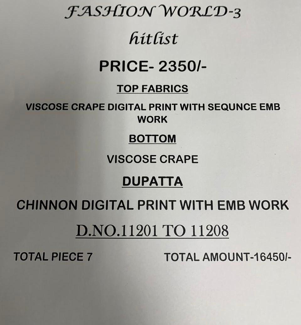 Brand - Vivek Fashion Catlog name -FASHION WORLD-3. HITLIST Set to set. GST 5 Percent Extra. Delivery from today |