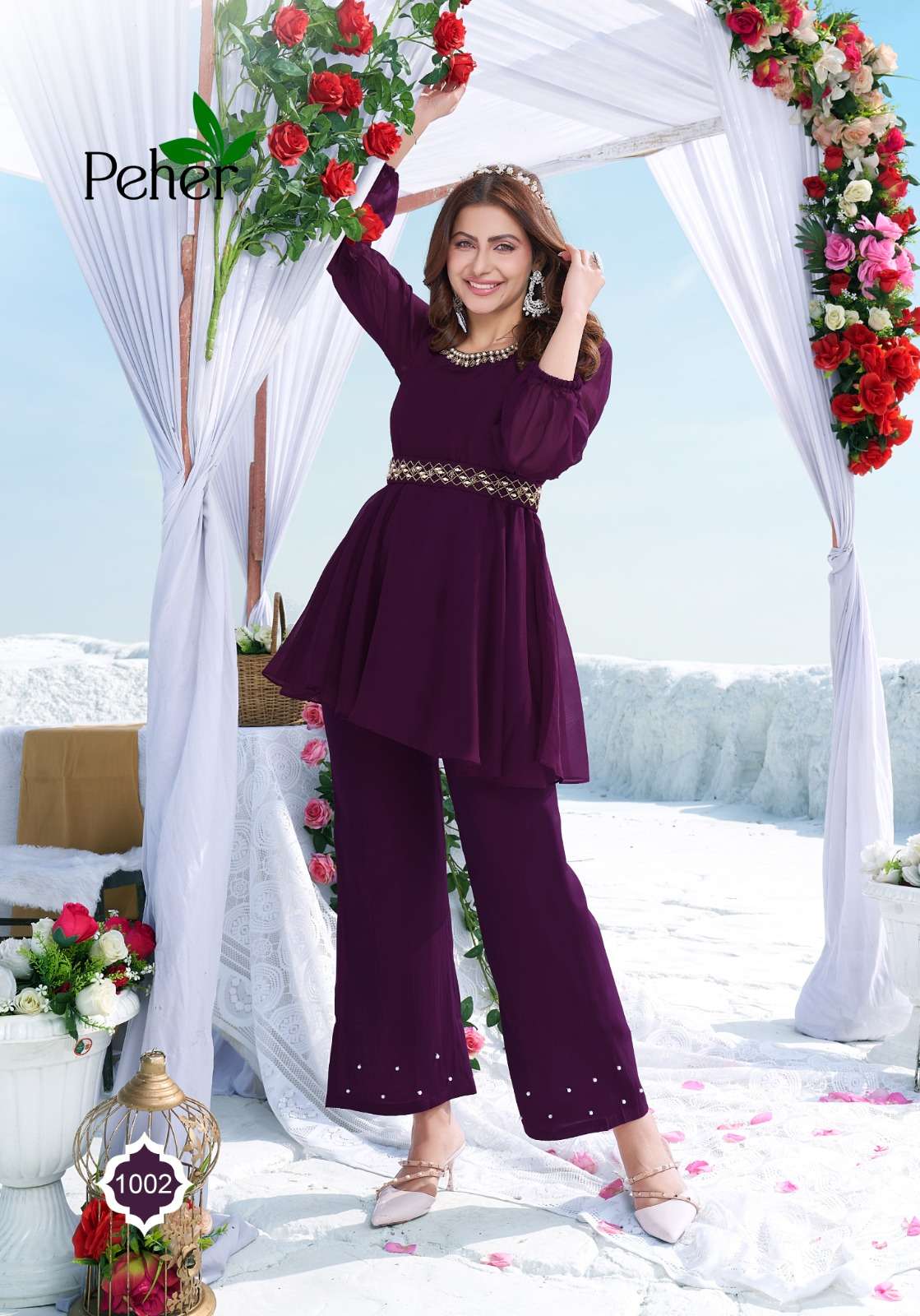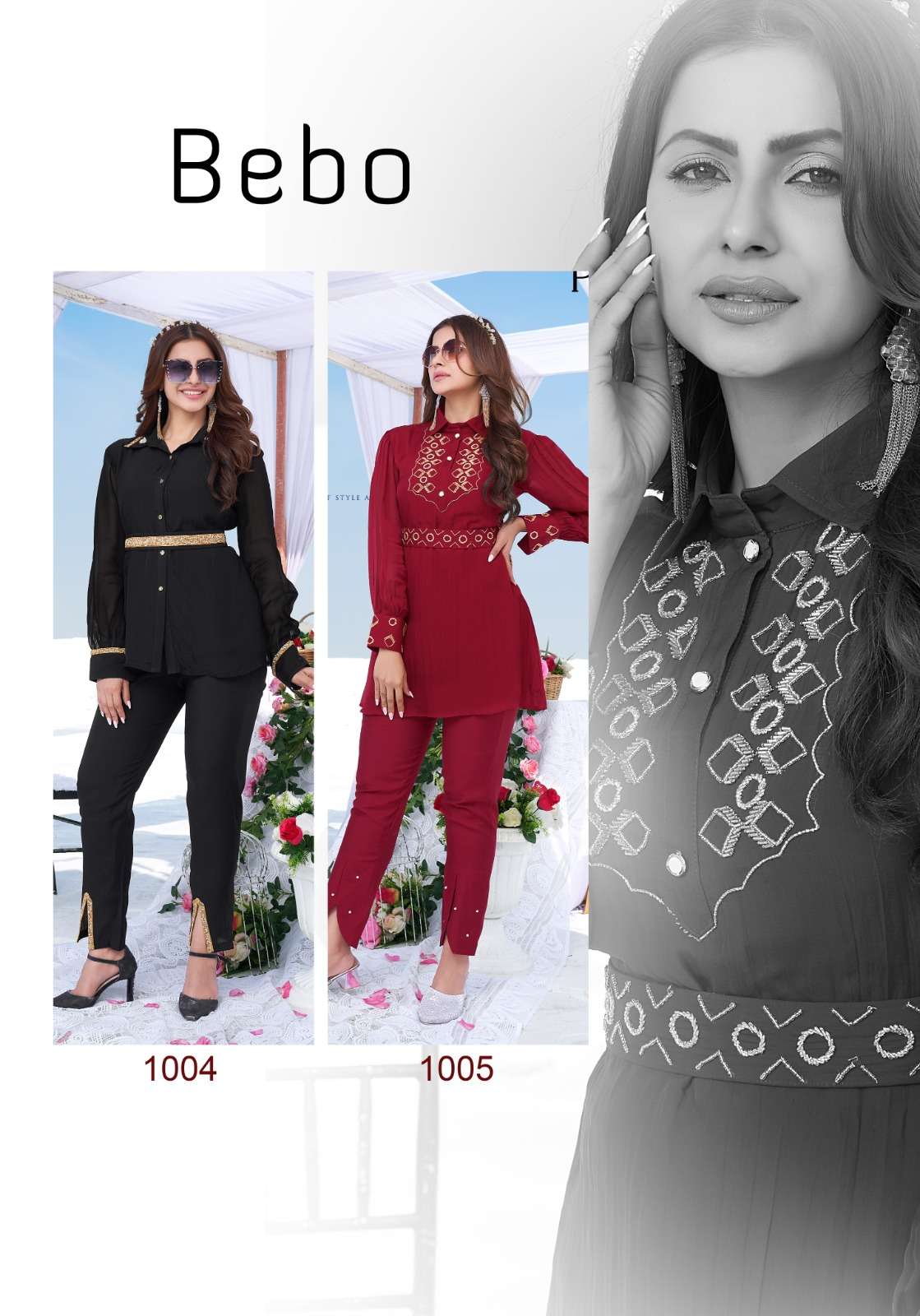 This is the time to embrace your inner charm and make heads turn. These co-ords are worth adding to the wardrobe. Vivils silk mills Pvt LTD Catlouge Name - BEBO VOL. 1 Fabric Top - PURE VISCOSE ORGANEZA WITH INNER Bottom - BERLIN SILK WORK - HANDWORK Price - 1295 /- + G.S.T Size - M(38) L (40) , XL ( 42 ) , XXL ( 44 ) , 3xl (46) Quantity - 5 PCS Dispatch Date - 27TH FEB |