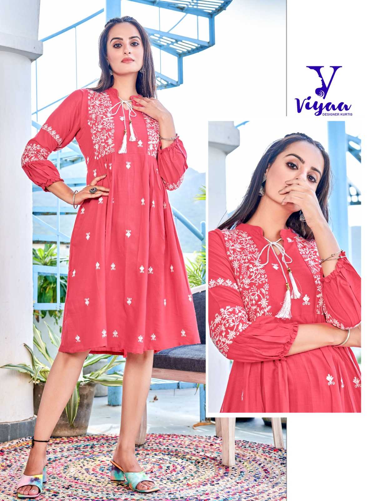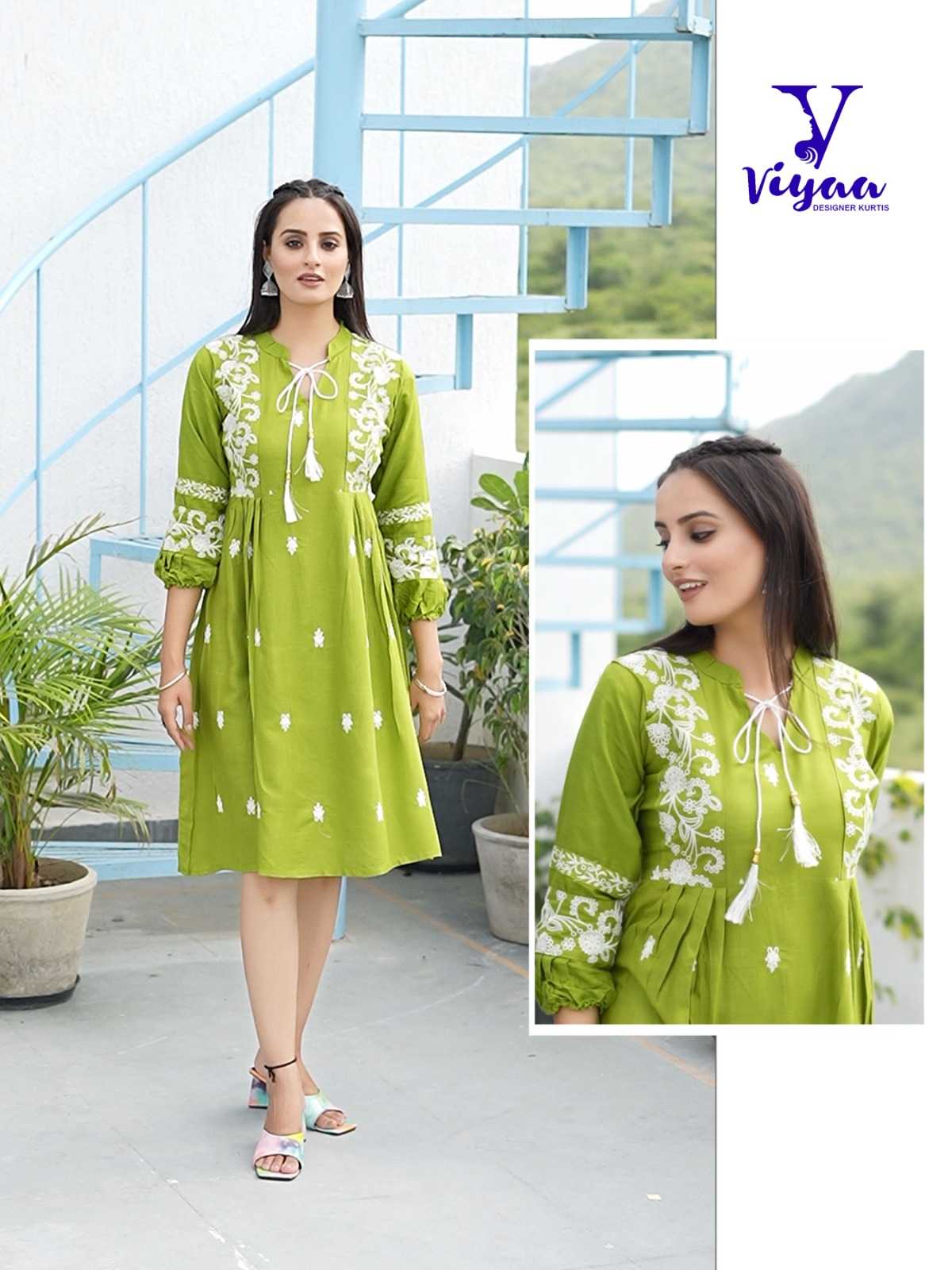 viyaa designer candy fancy rayon slub tunic style kurtis catalog