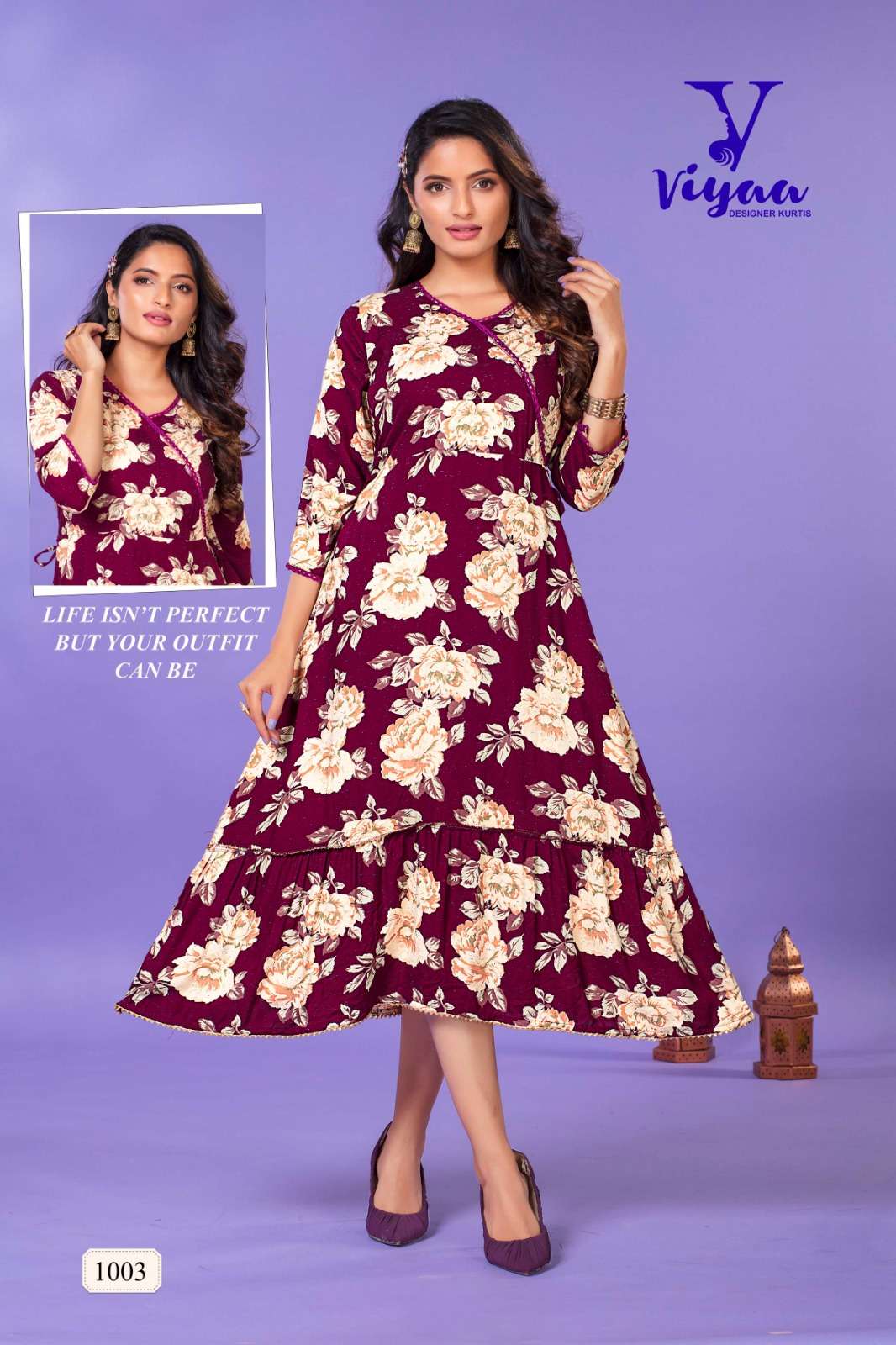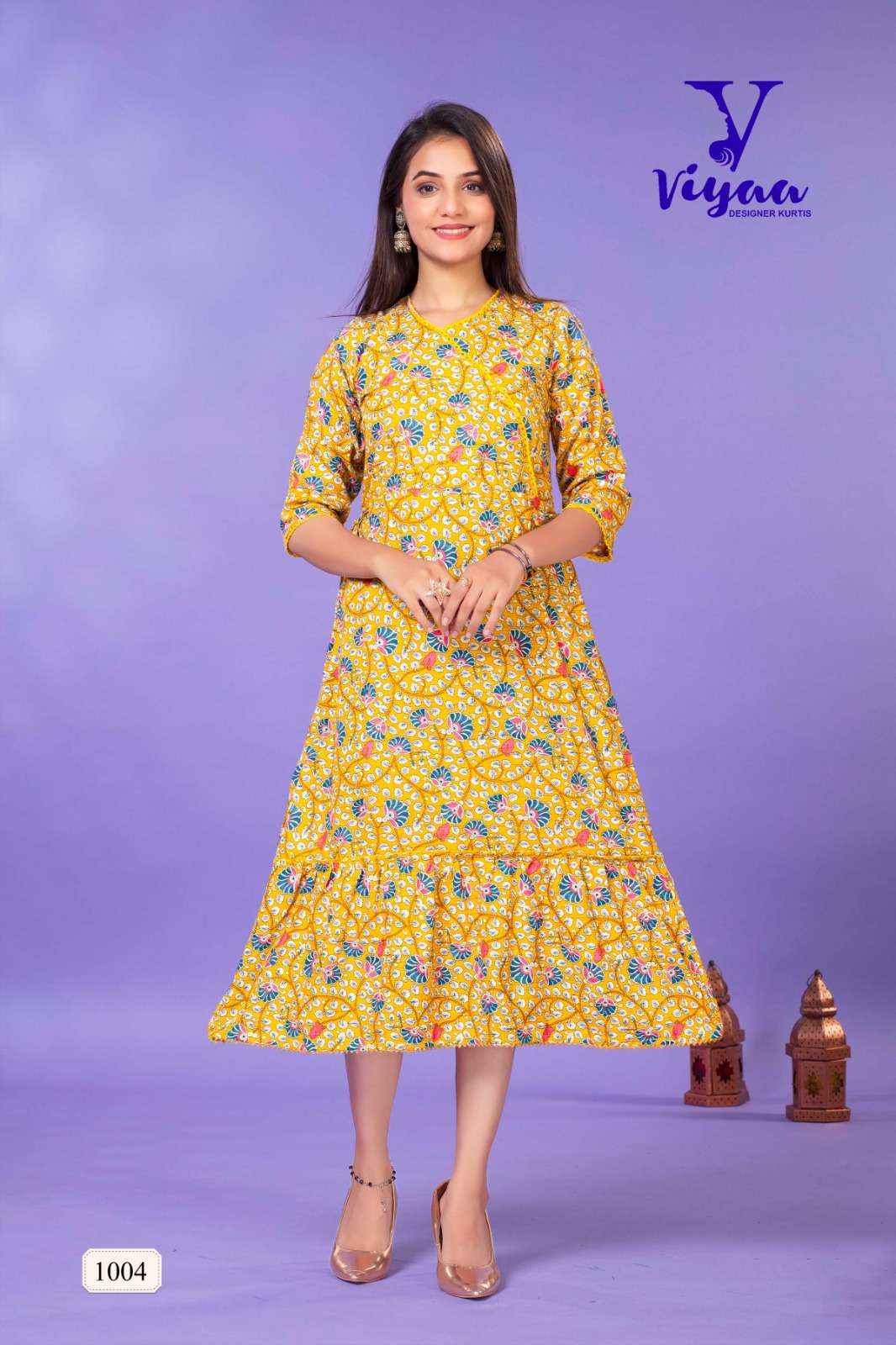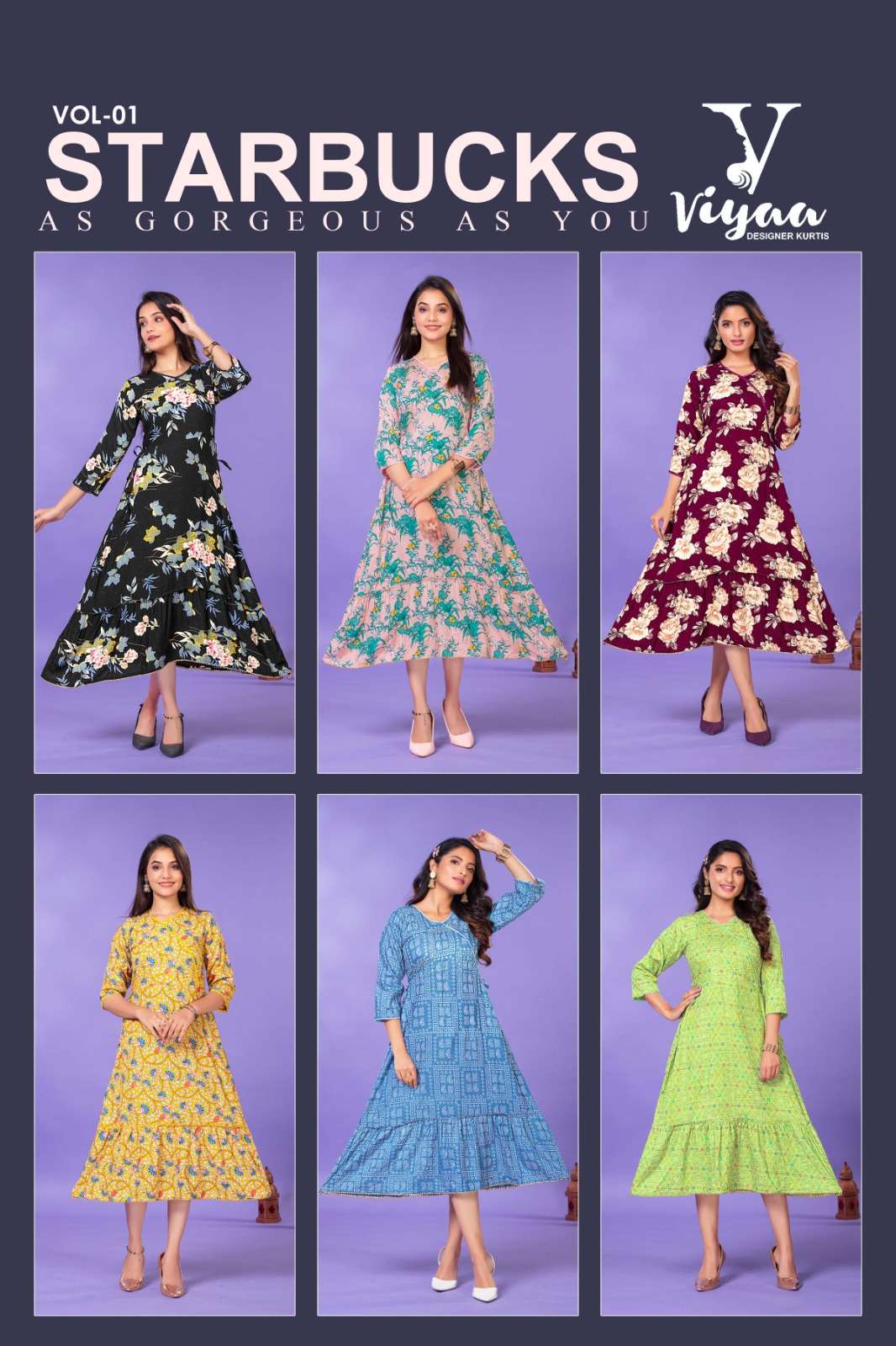 viyaa designer starbucks vol 1 fancy style rayon short kurtis