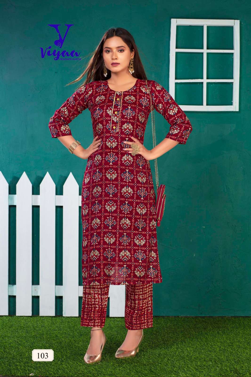 viyaa designer vitara vol 1 finest quality capsule rayon kurti and pant